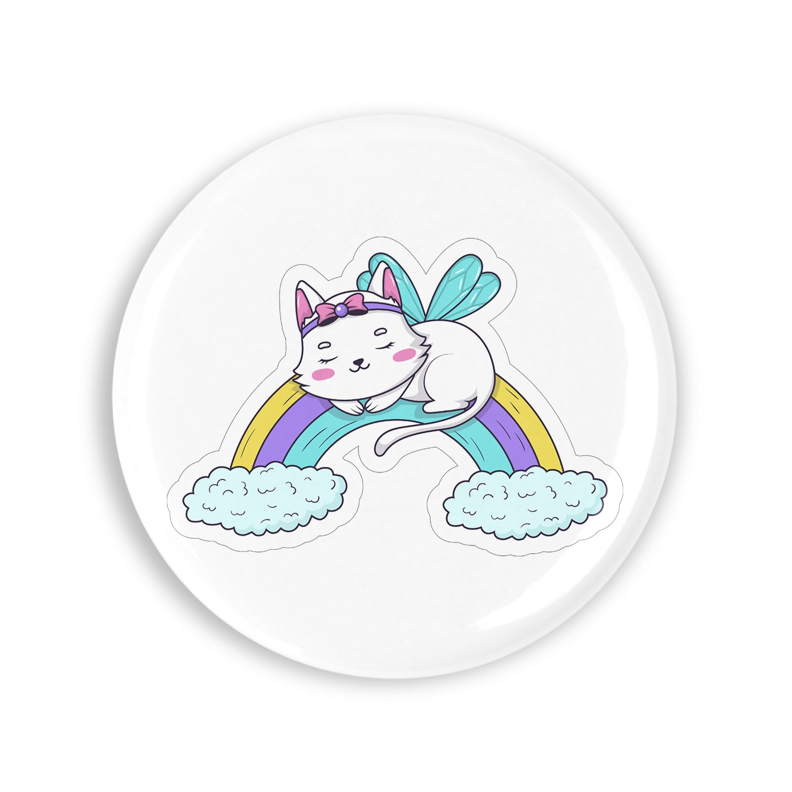 Set 4 insigne, Pisica dormind pe curcubeu, NO11239, Metal, 44 mm, Multicolor