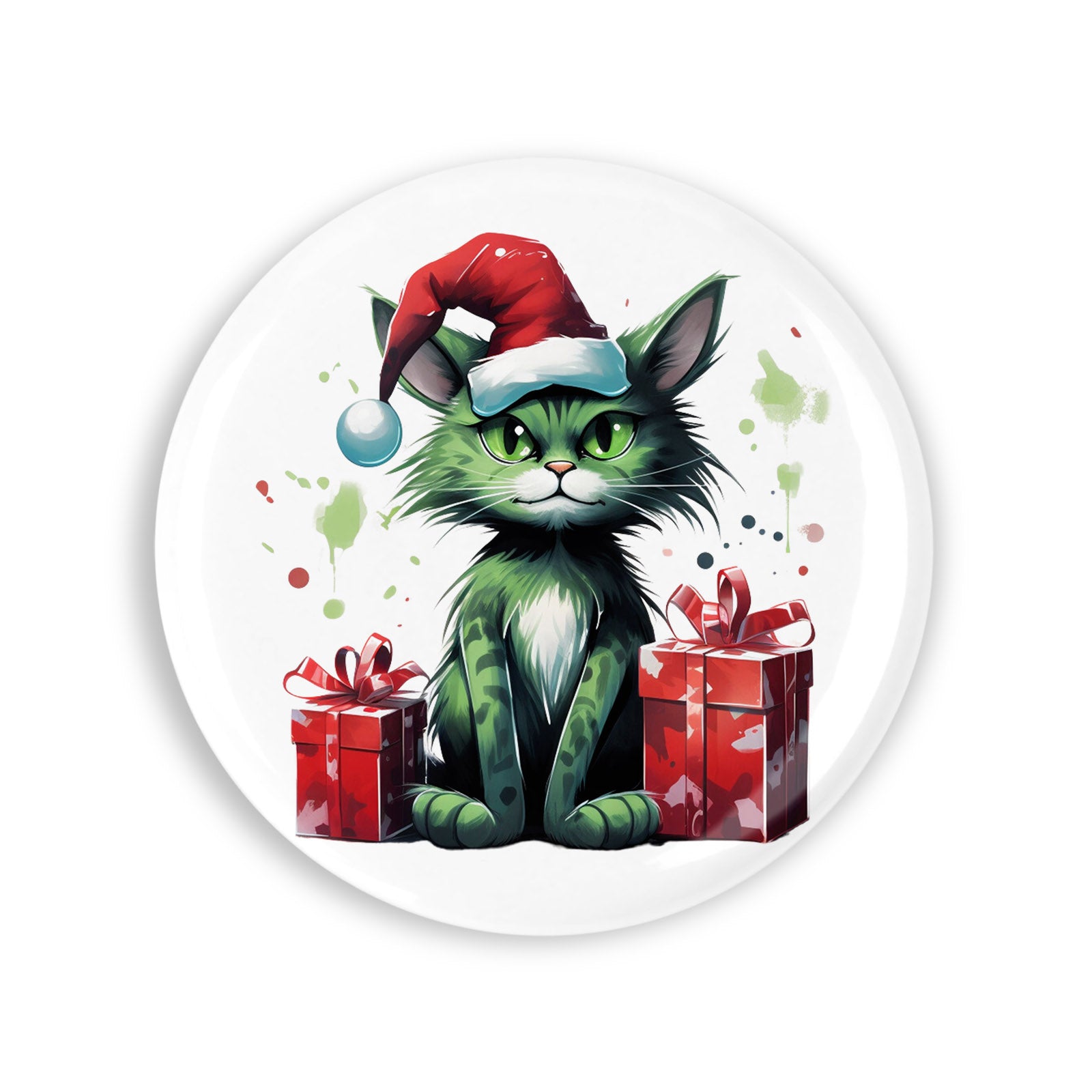 Set 4 insigne, Pisica Grinch sta la poza, NO1049, Metal, 44 mm, Multicolor