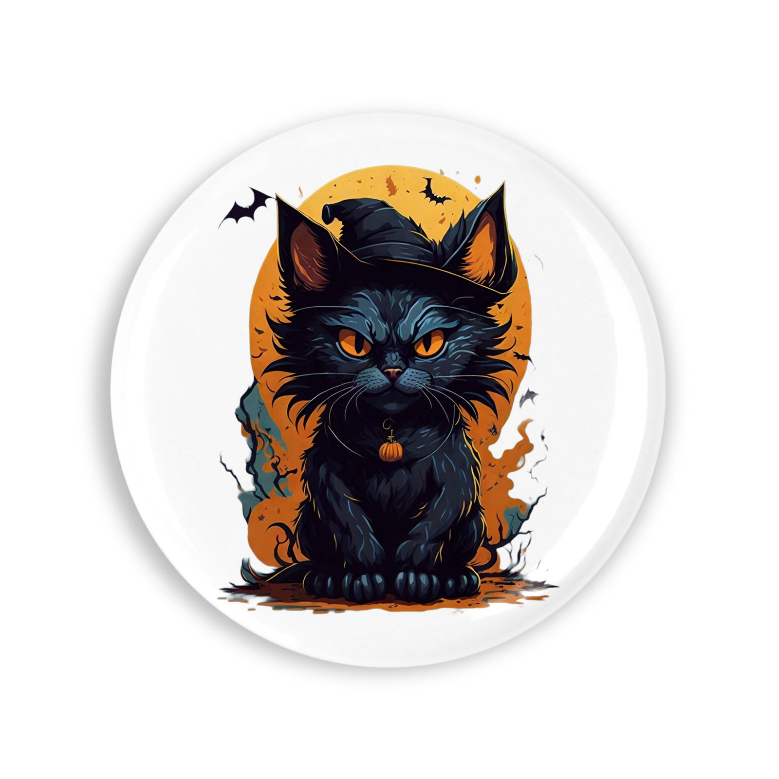 Set 4 insigne, Pisica halloween, NO6718, Metal, 44 mm, Multicolor