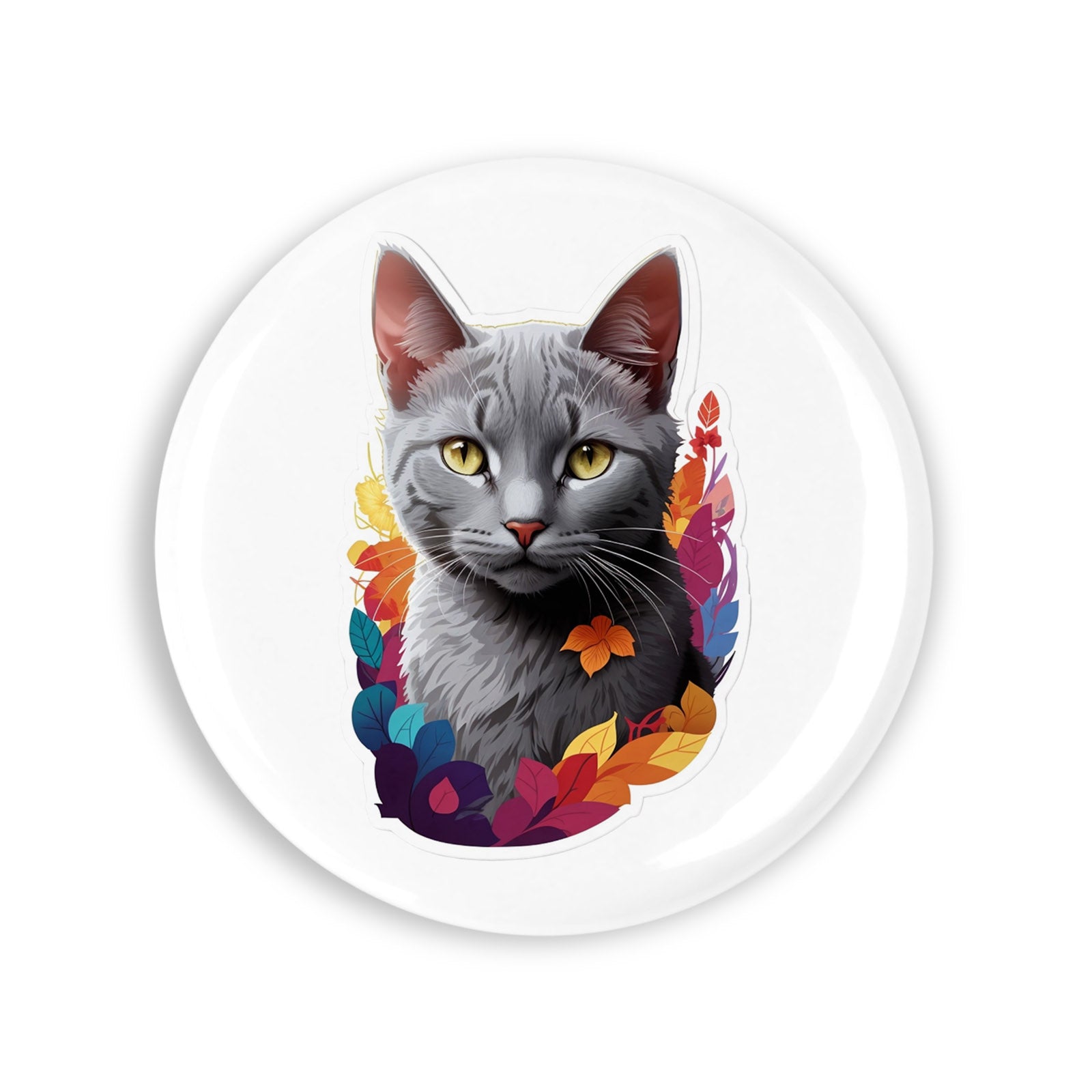 Set 4 insigne, Pisica Korat cu floricele, NO8405, Metal, 44 mm, Multicolor
