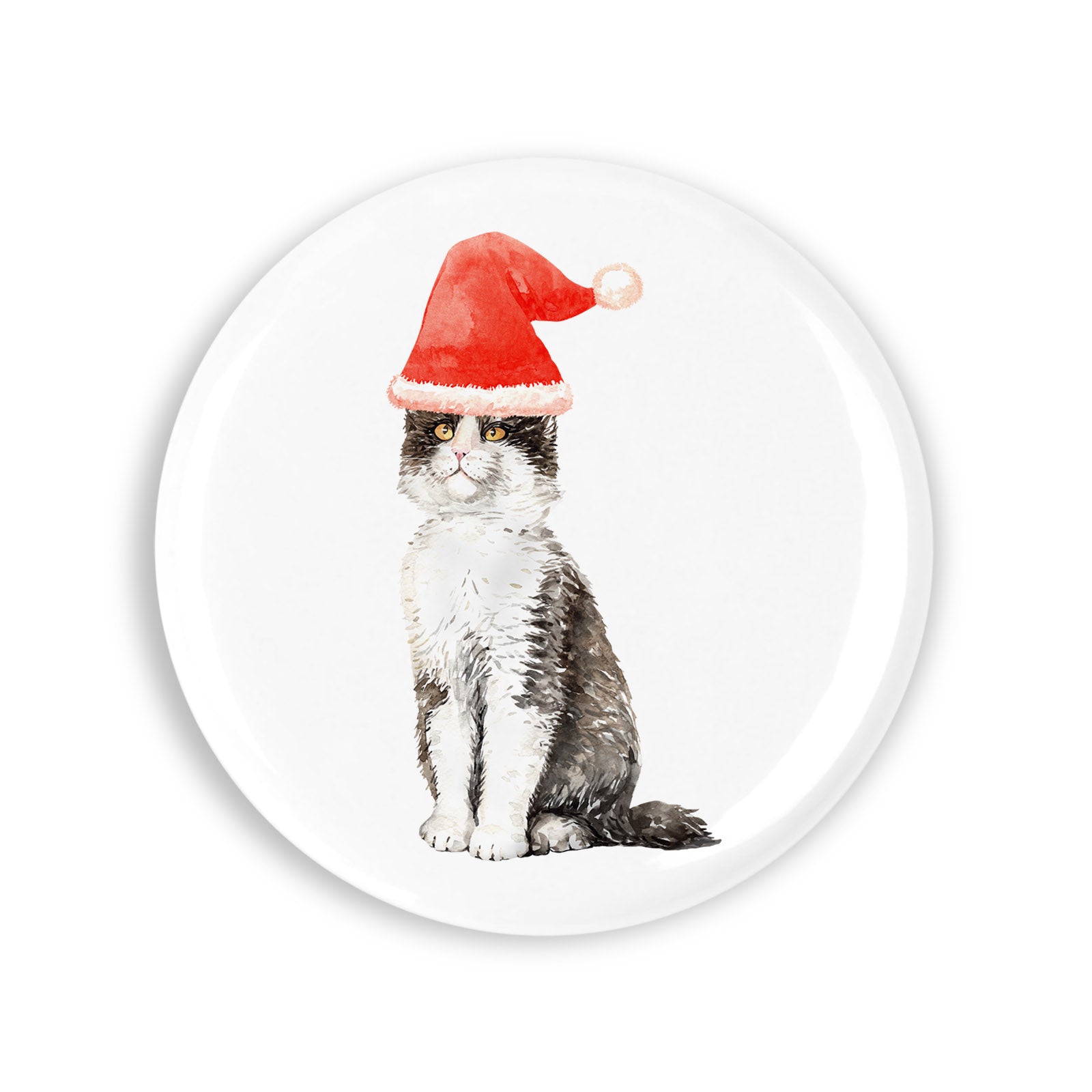 Set 4 insigne, Pisica pregatita de craciun sta pe jos, NO11278, Metal, 44 mm, Multicolor