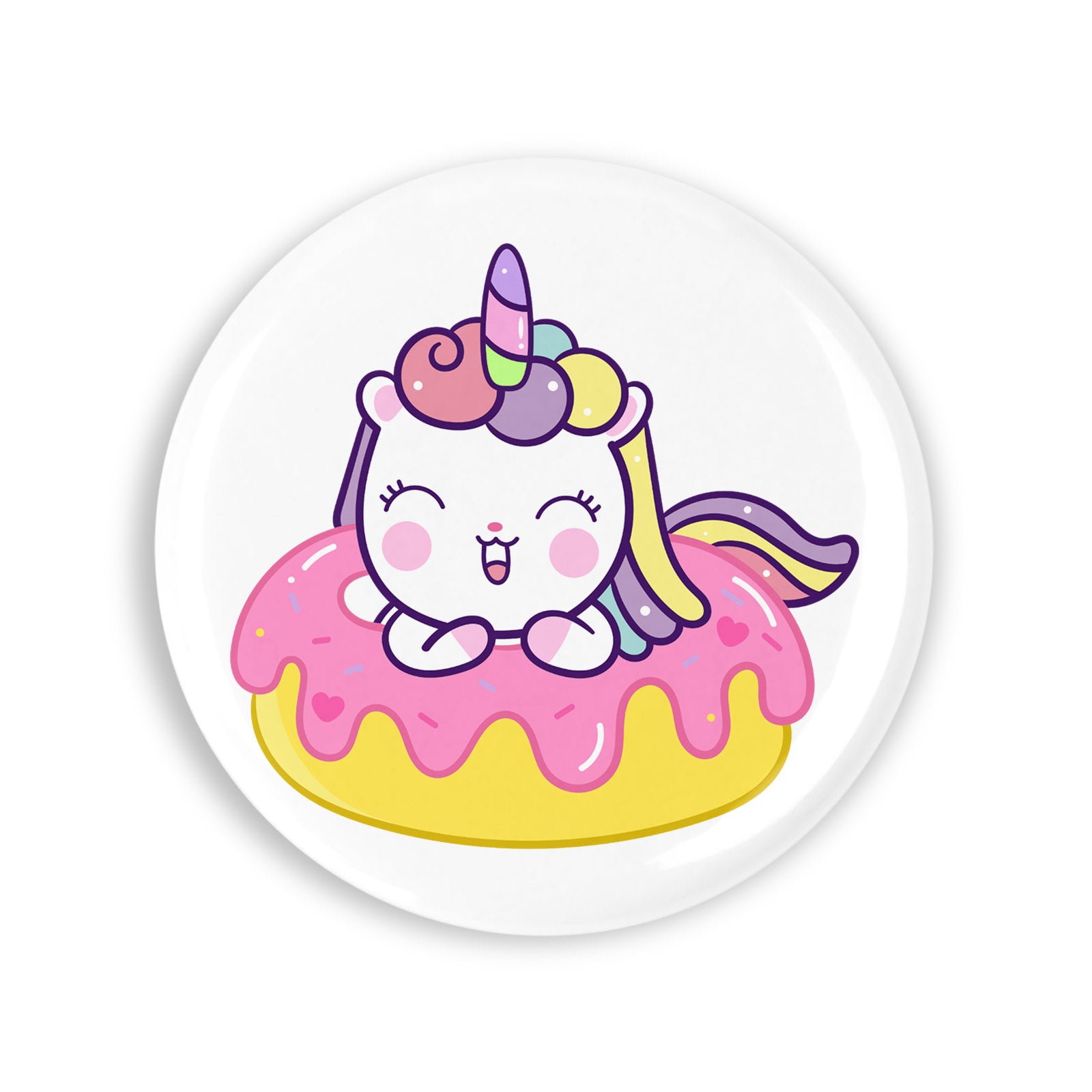 Set 4 insigne, Pisica unicorn pe gogoasa, NO11289, Metal, 44 mm, Multicolor