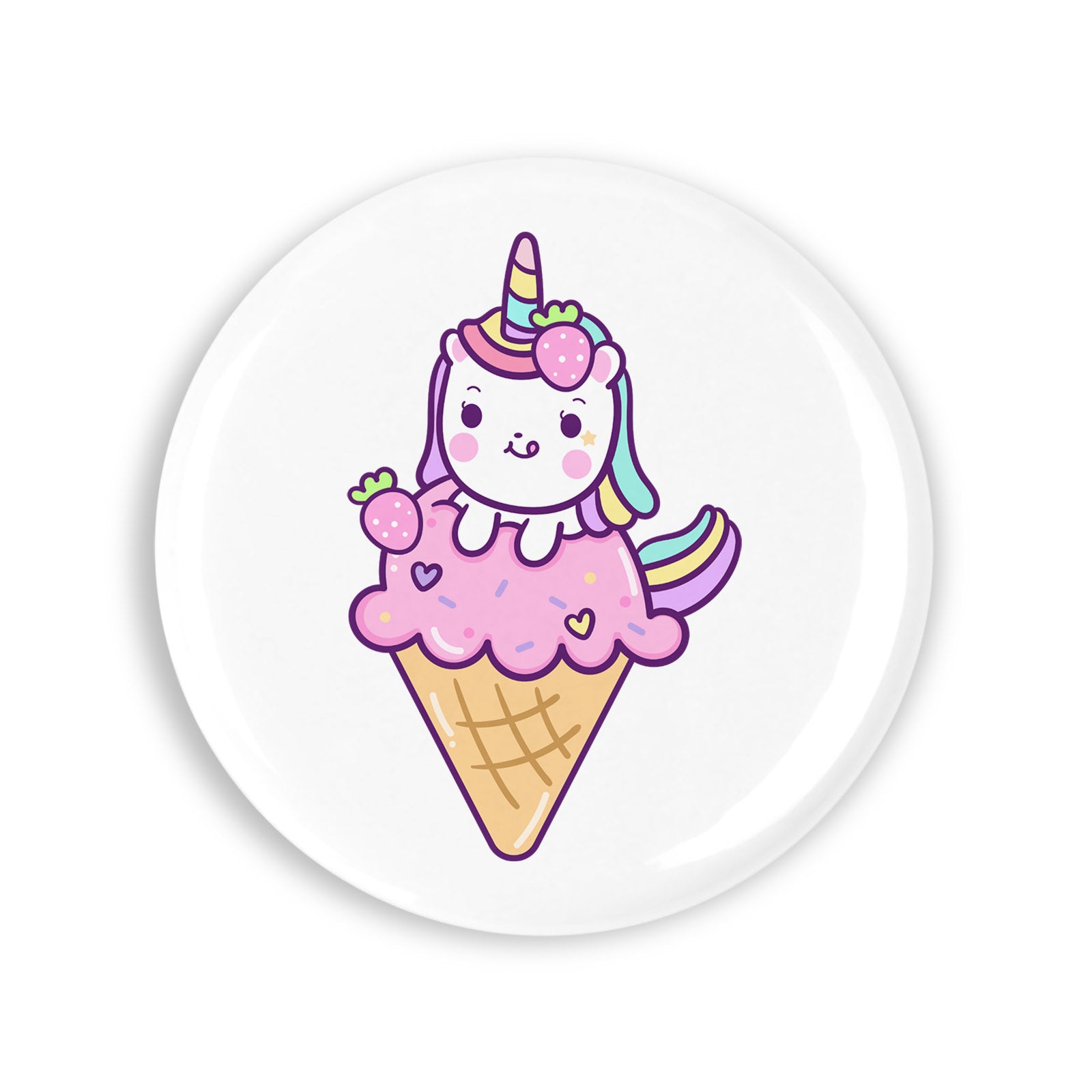 Set 4 insigne, Pisica unicorn pe o inghetata, NO11290, Metal, 44 mm, Multicolor
