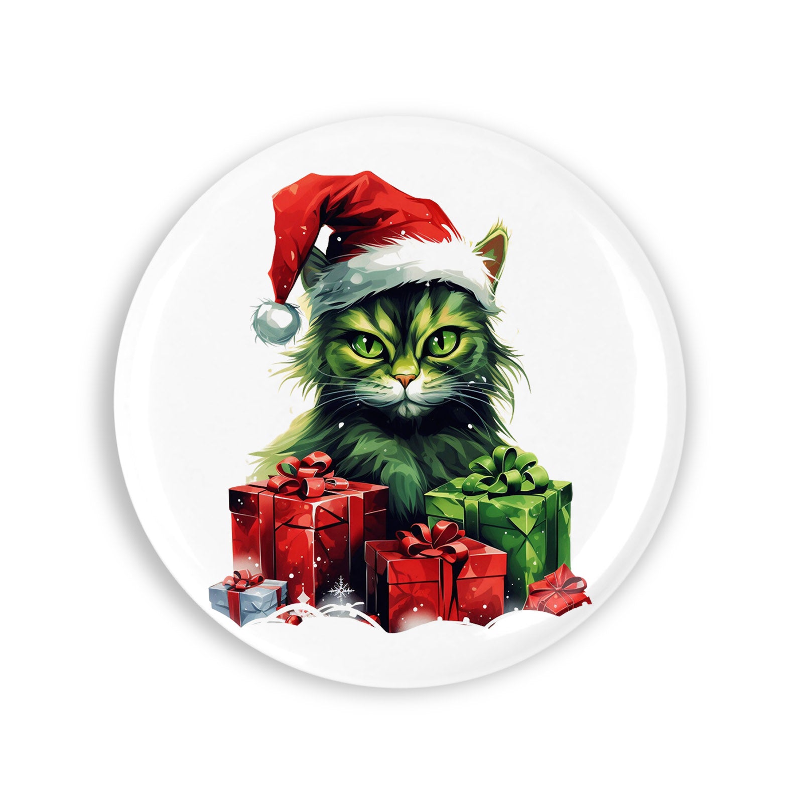 Set 4 insigne, Pisica verde cu privire profunda, NO3922, Metal, 44 mm, Multicolor