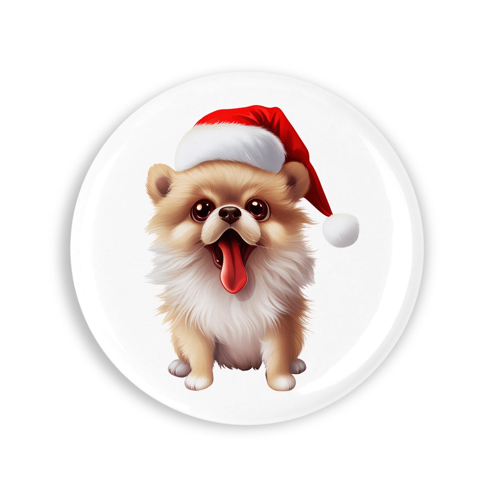 Set 4 insigne, Pomeranian cu caciula de craciun, NO1673, Metal, 44 mm, Multicolor