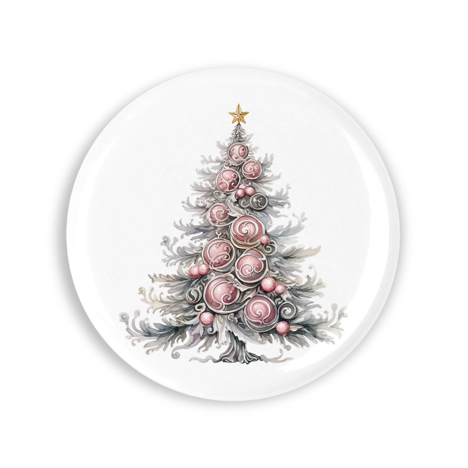 Set 4 insigne, Pomul de craciun argintiu, NO1916, Metal, 44 mm, Multicolor