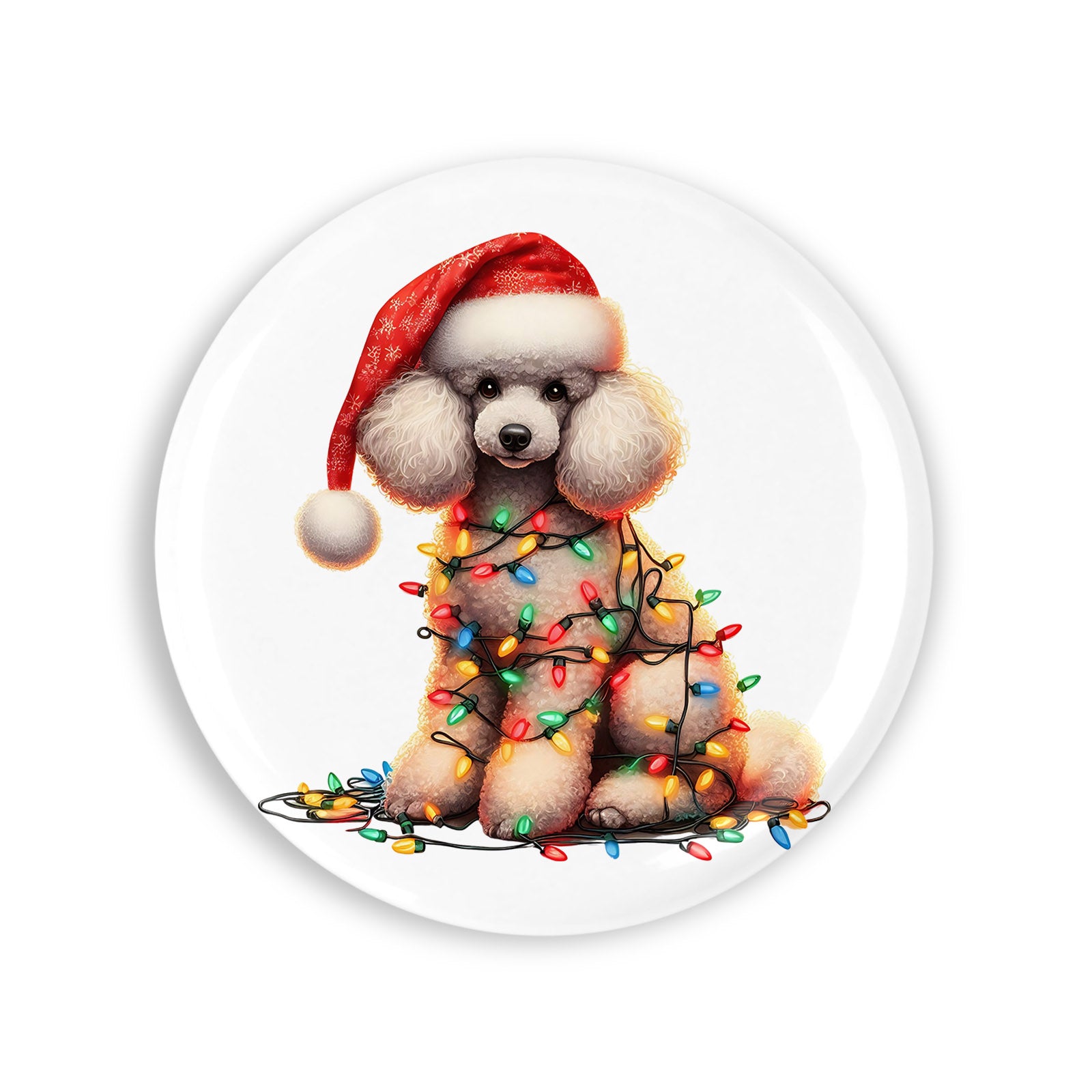 Set 4 insigne, Poodle impodobit de craciun, NO264, Metal, 44 mm, Multicolor