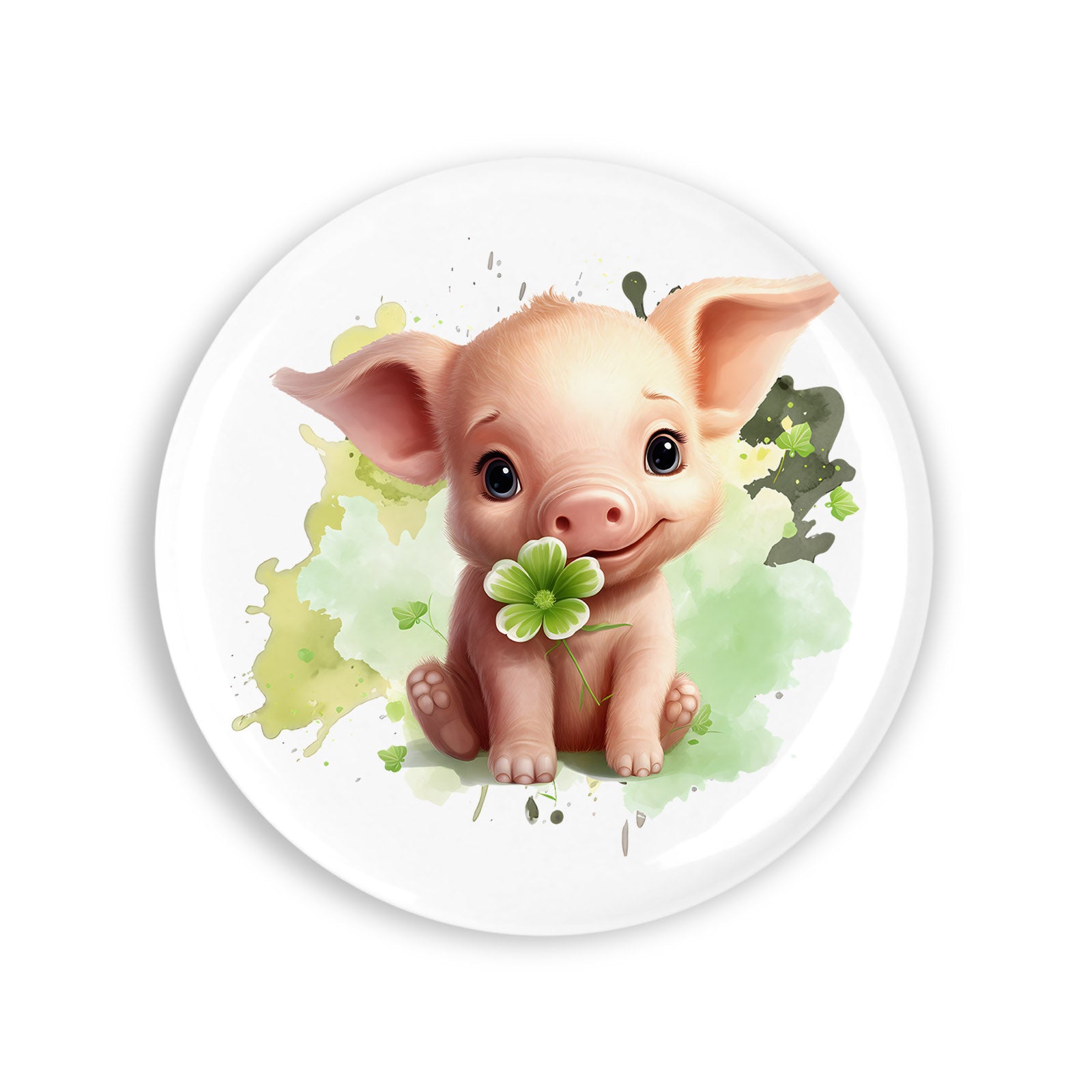 Set 4 insigne, Porcusorul cu floare verde, NO3836, Metal, 44 mm, Multicolor