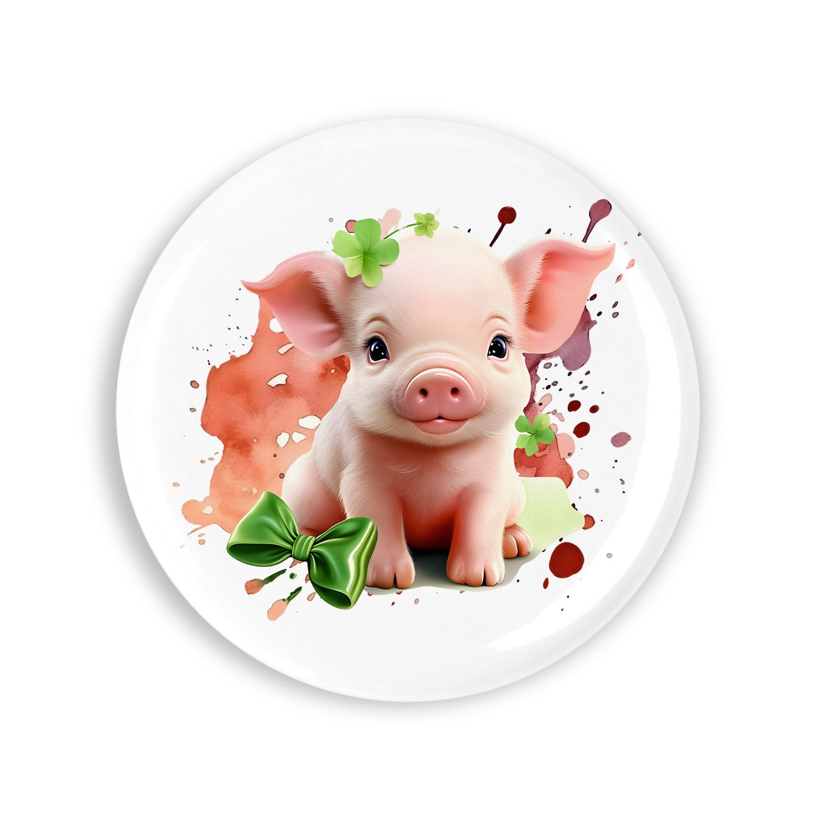 Set 4 insigne, Porcusorul cu funda verde, NO949, Metal, 44 mm, Multicolor
