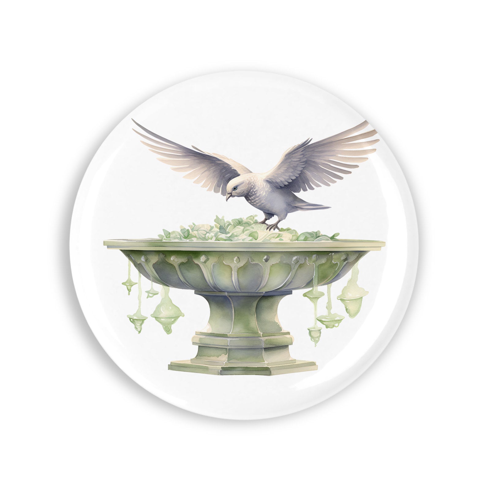 Set 4 insigne, Porumbel in fantana cu flori, NO4635, Metal, 44 mm, Multicolor
