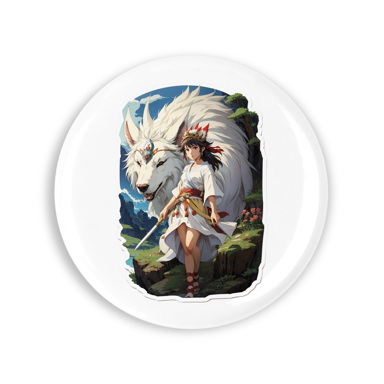 Set 4 insigne, Printesa Mononoke cu lupul si sabia, NO7356, Metal, 44 mm, Multicolor