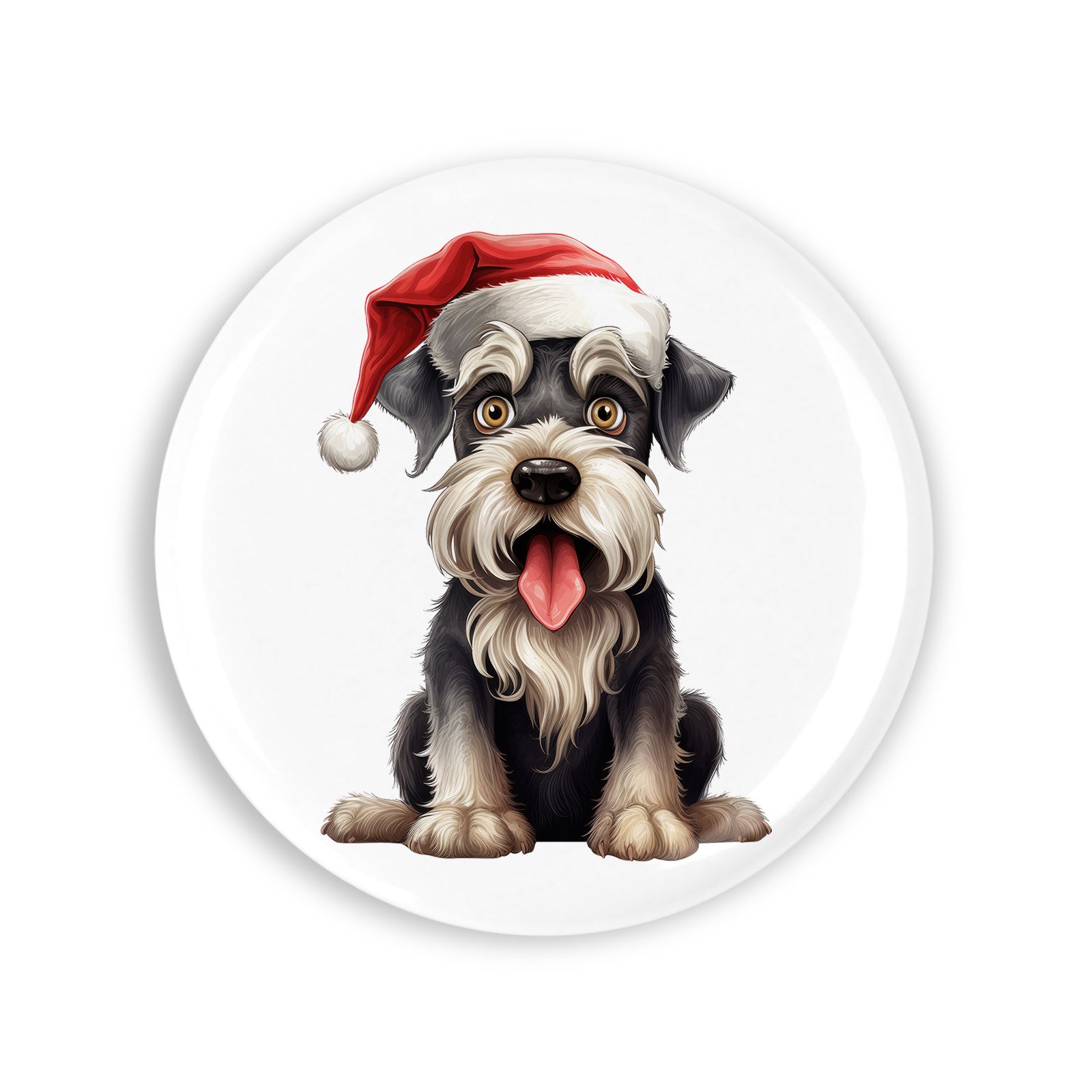 Set 4 insigne, Pui de Schnauzer cu caciula de craciun, NO914, Metal, 44 mm, Multicolor