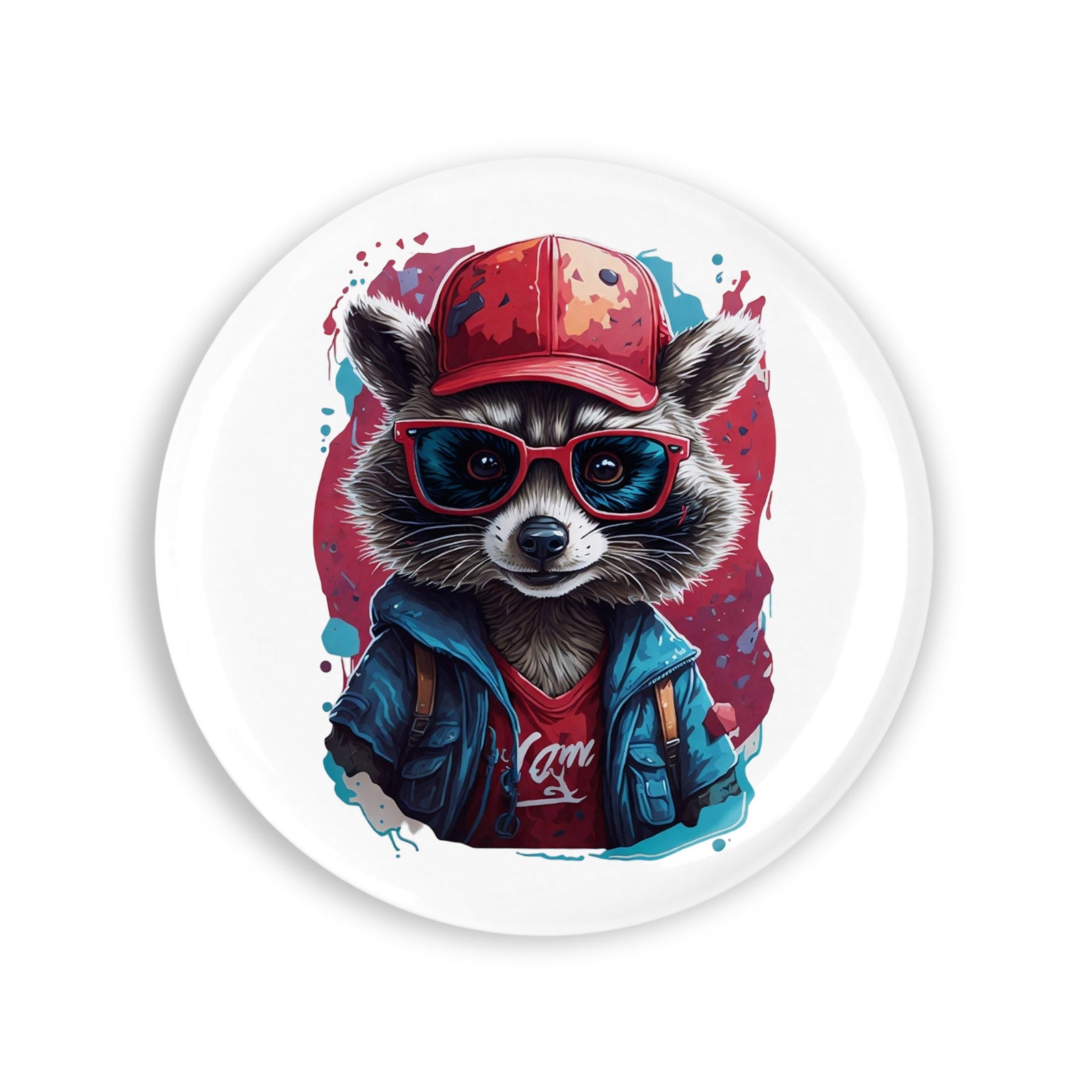 Set 4 insigne, Raton cu sapca si ochelari, NO7064, Metal, 44 mm, Multicolor