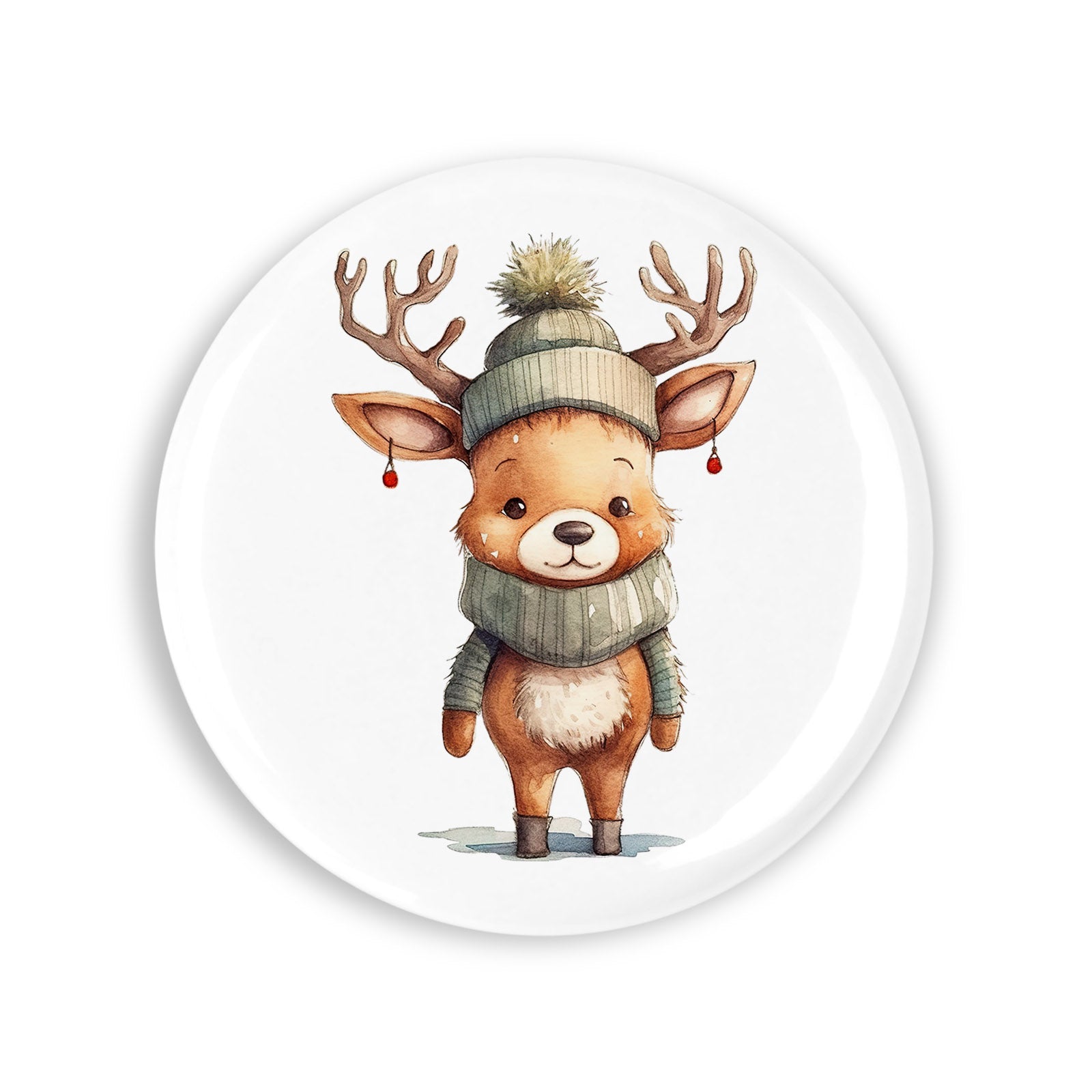 Set 4 insigne, Renul cu caciula si fular, NO6195, Metal, 44 mm, Multicolor