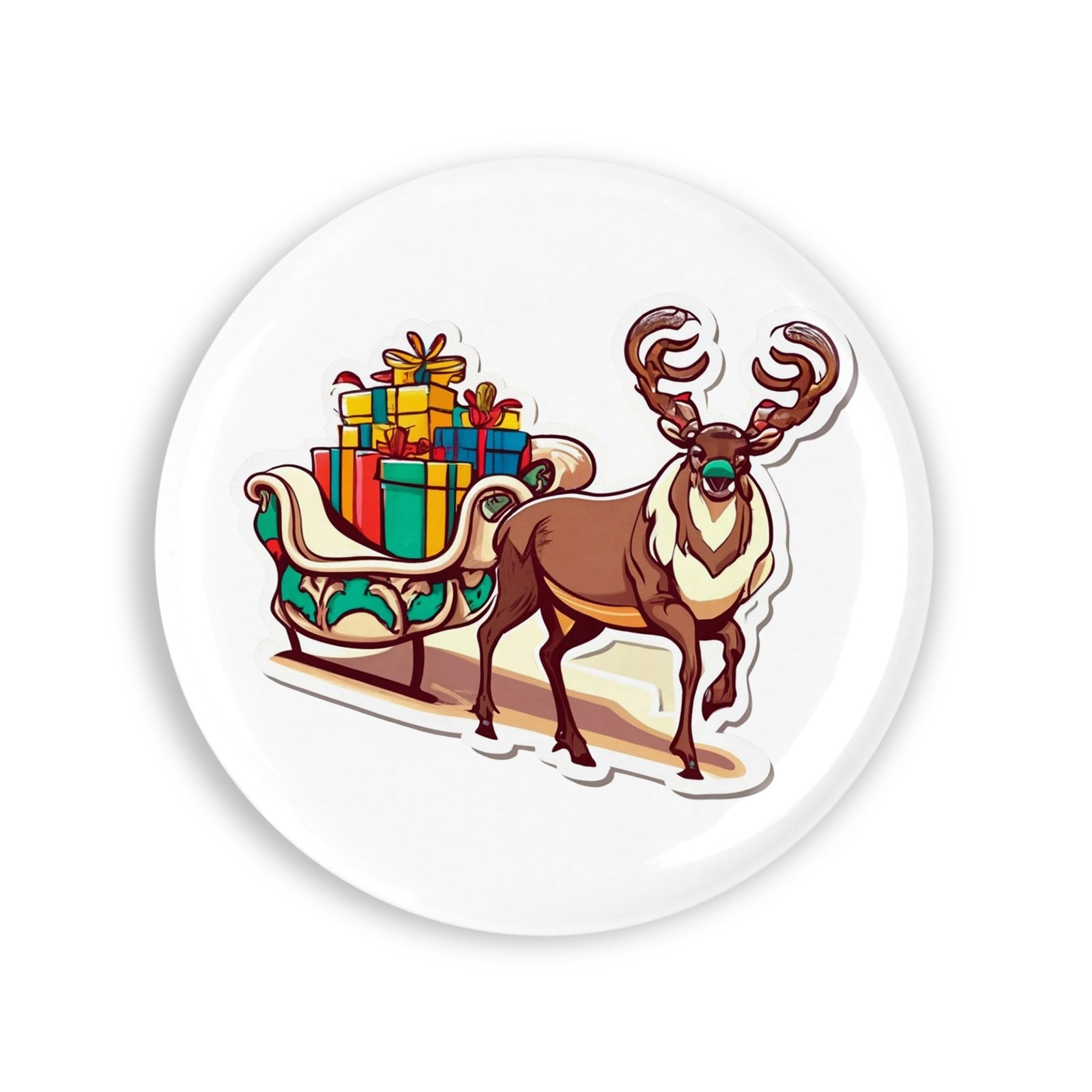 Set 4 insigne, Renul cu sania plina de cadouri, NO6271, Metal, 44 mm, Multicolor