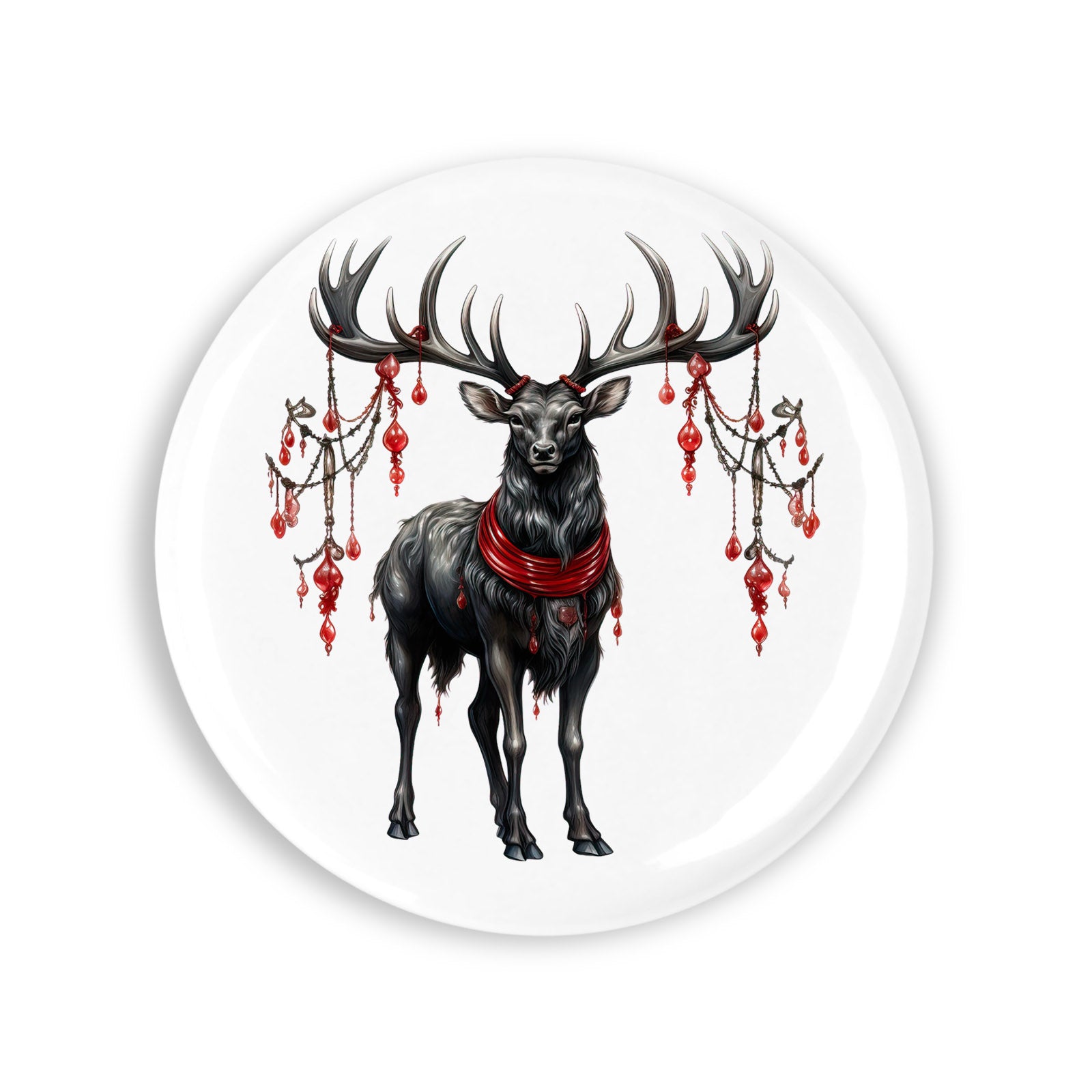 Set 4 insigne, Renul negru cu globuri rosii, NO5579, Metal, 44 mm, Multicolor