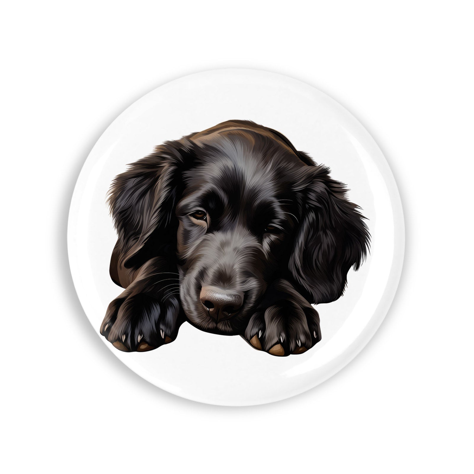 Set 4 insigne, Retriever negru cu parul drept, NO5207, Metal, 44 mm, Multicolor