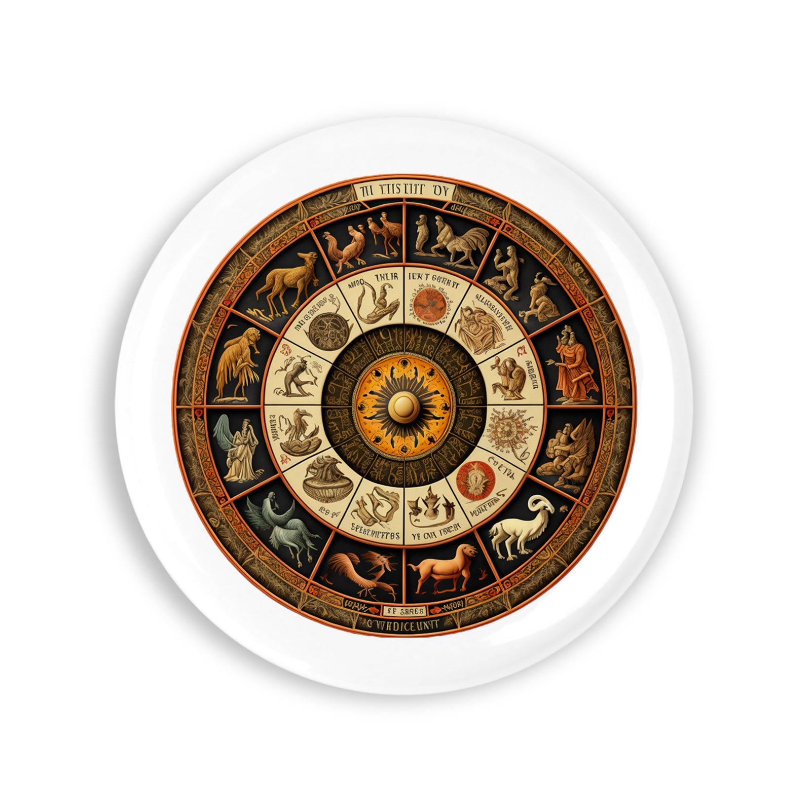 Set 4 insigne, Roata zodiac, NO11655, Metal, 44 mm, Multicolor