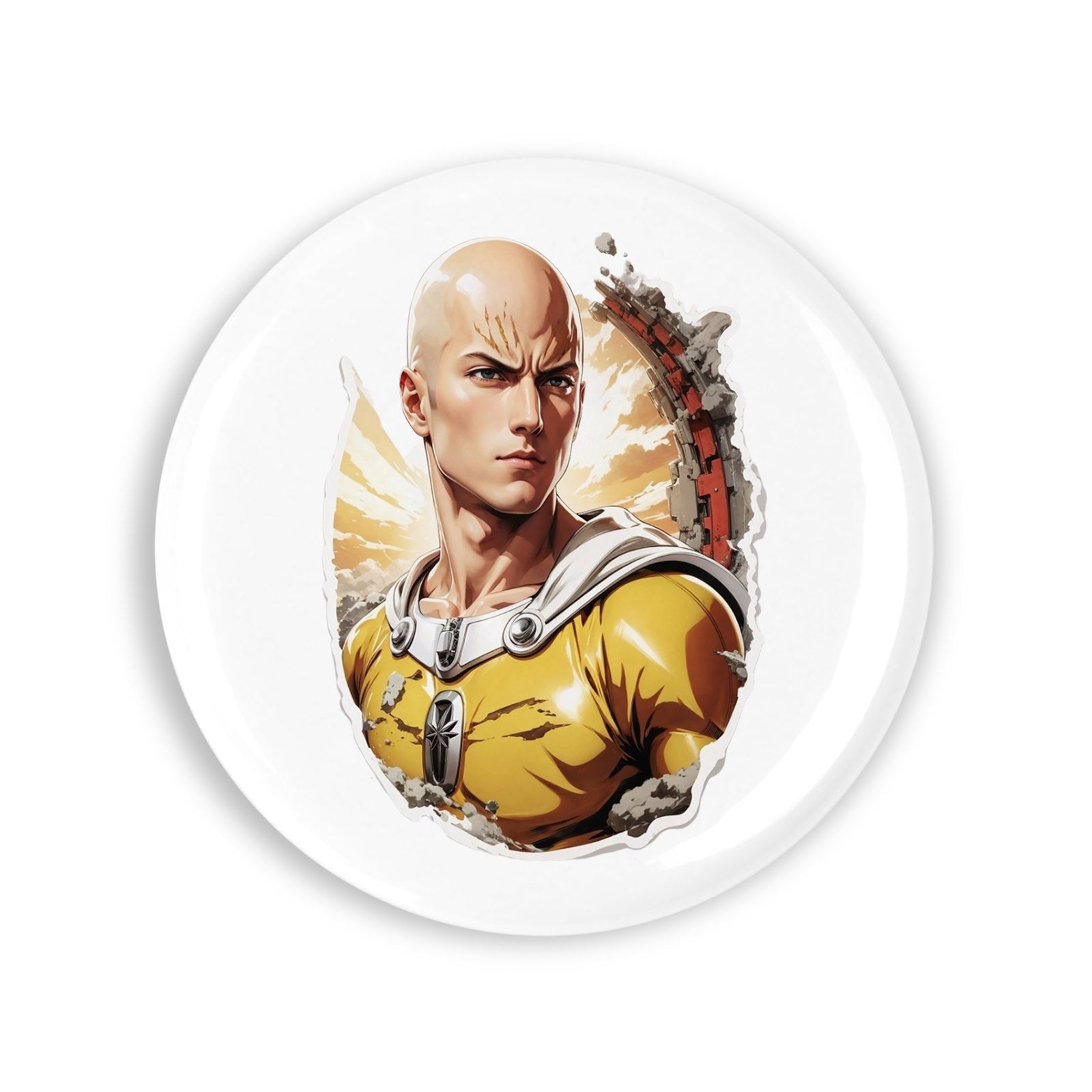 Set 4 insigne, Saitama in costum de lupta, NO7370, Metal, 44 mm, Multicolor