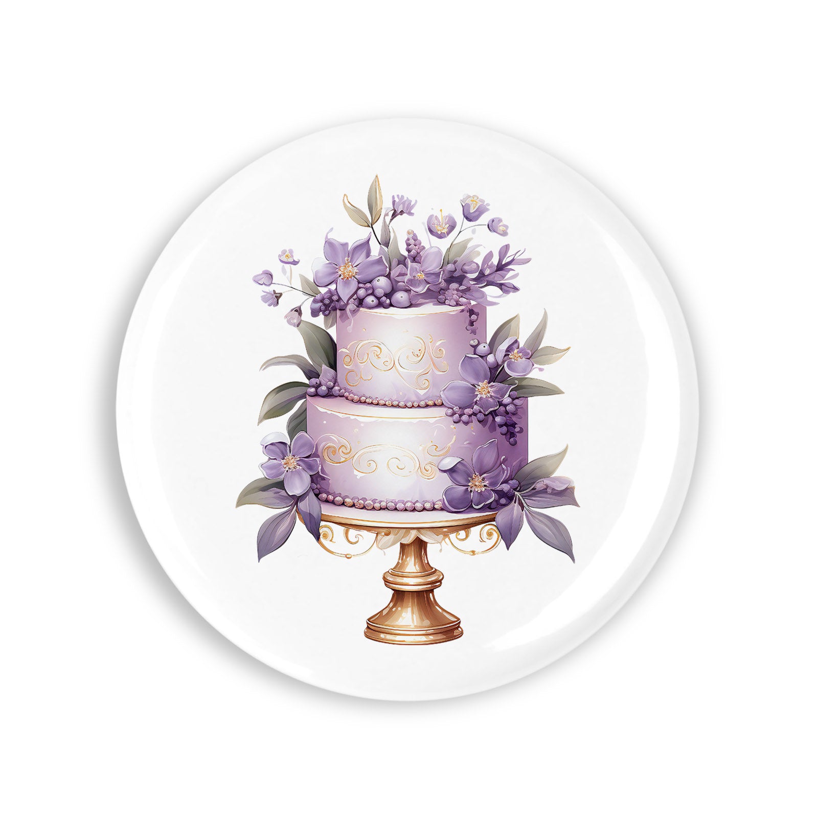 Set 4 insigne, Tort cu doua etaje si flori mov, NO2217, Metal, 44 mm, Multicolor