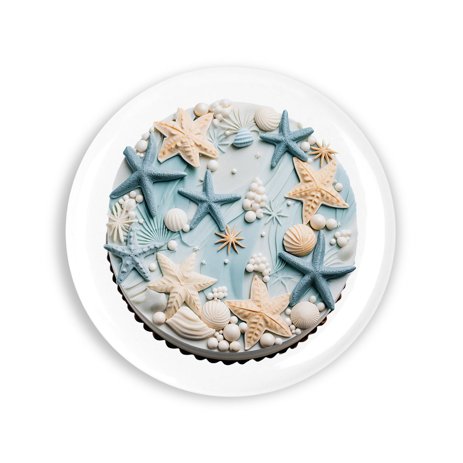 Set 4 insigne, Tort cu ornament marin, NO4833, Metal, 44 mm, Multicolor