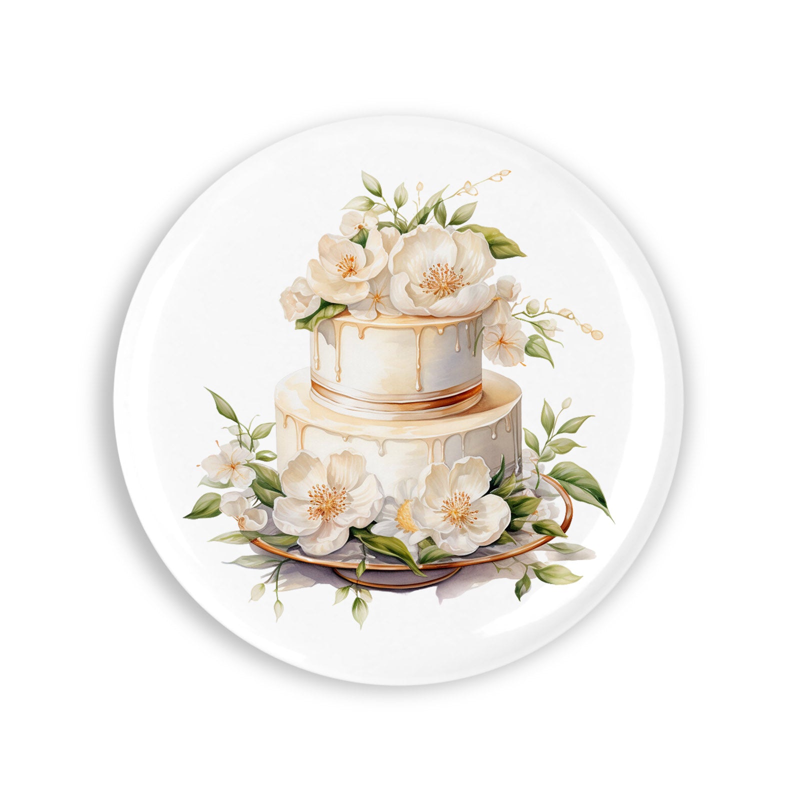 Set 4 insigne, Tort de nunta cu bujori albi, NO2632, Metal, 44 mm, Multicolor