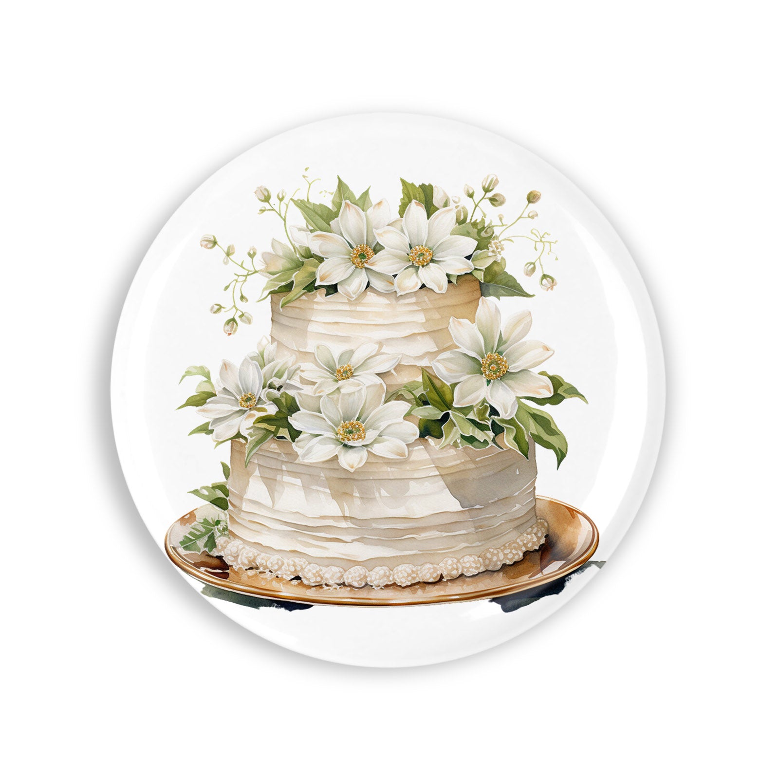 Set 4 insigne, Tort de nunta cu flori albe cu frunze, NO3315, Metal, 44 mm, Multicolor