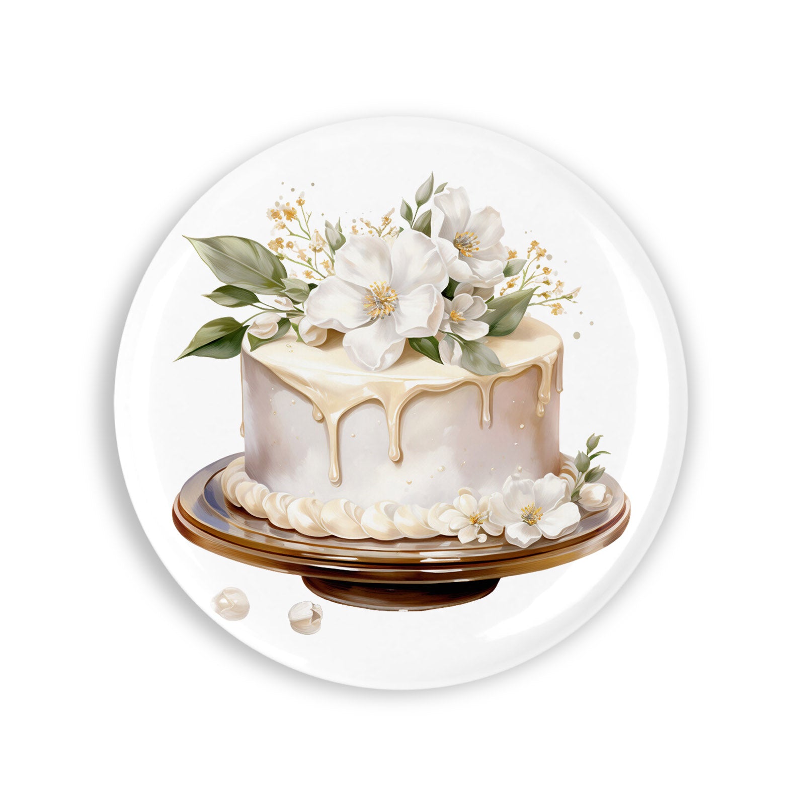Set 4 insigne, Tort de nunta cu flori albe, NO5941, Metal, 44 mm, Multicolor