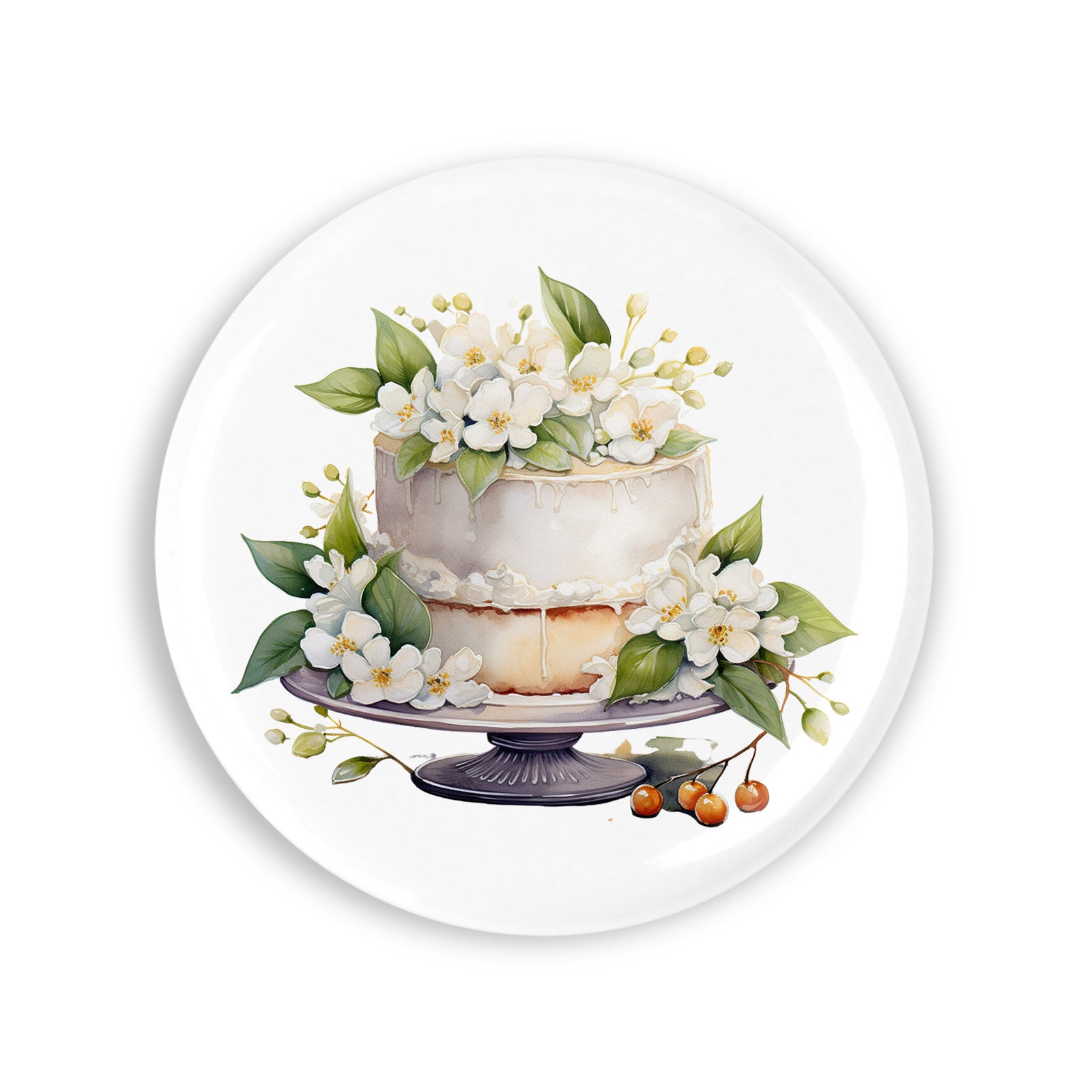 Set 4 insigne, Tort de nunta cu flori de iasomie, NO4299, Metal, 44 mm, Multicolor