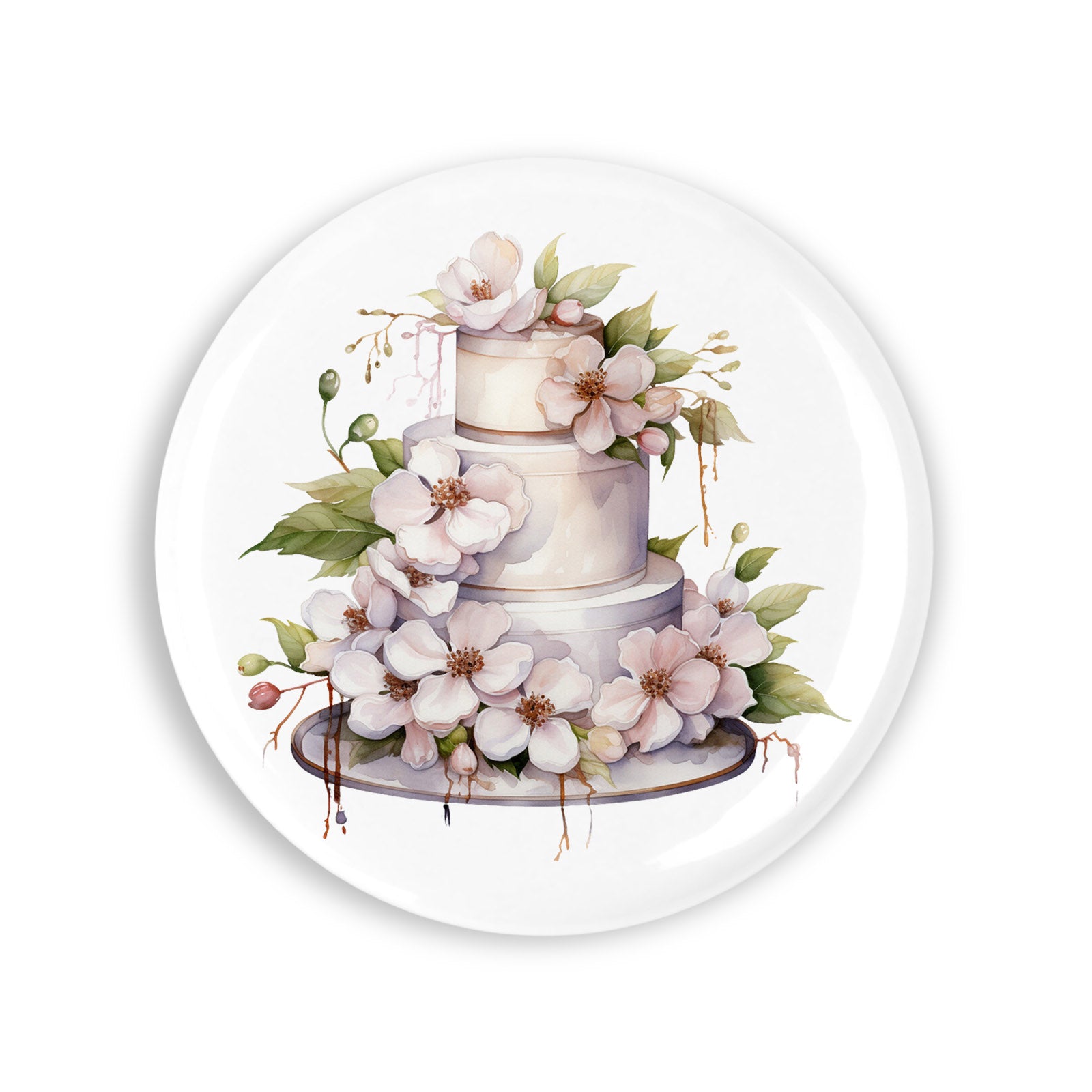 Set 4 insigne, Tort de nunta cu flori de mar, NO2724, Metal, 44 mm, Multicolor