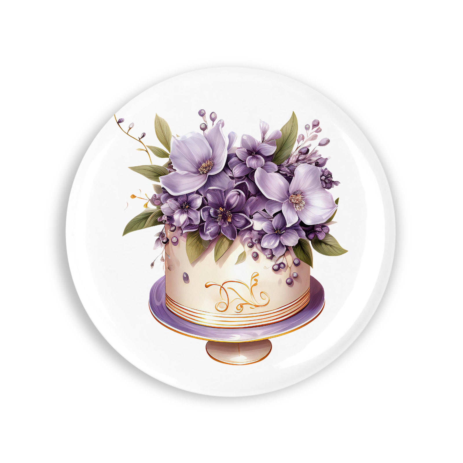 Set 4 insigne, Tort ornat cu flori, NO748, Metal, 44 mm, Multicolor