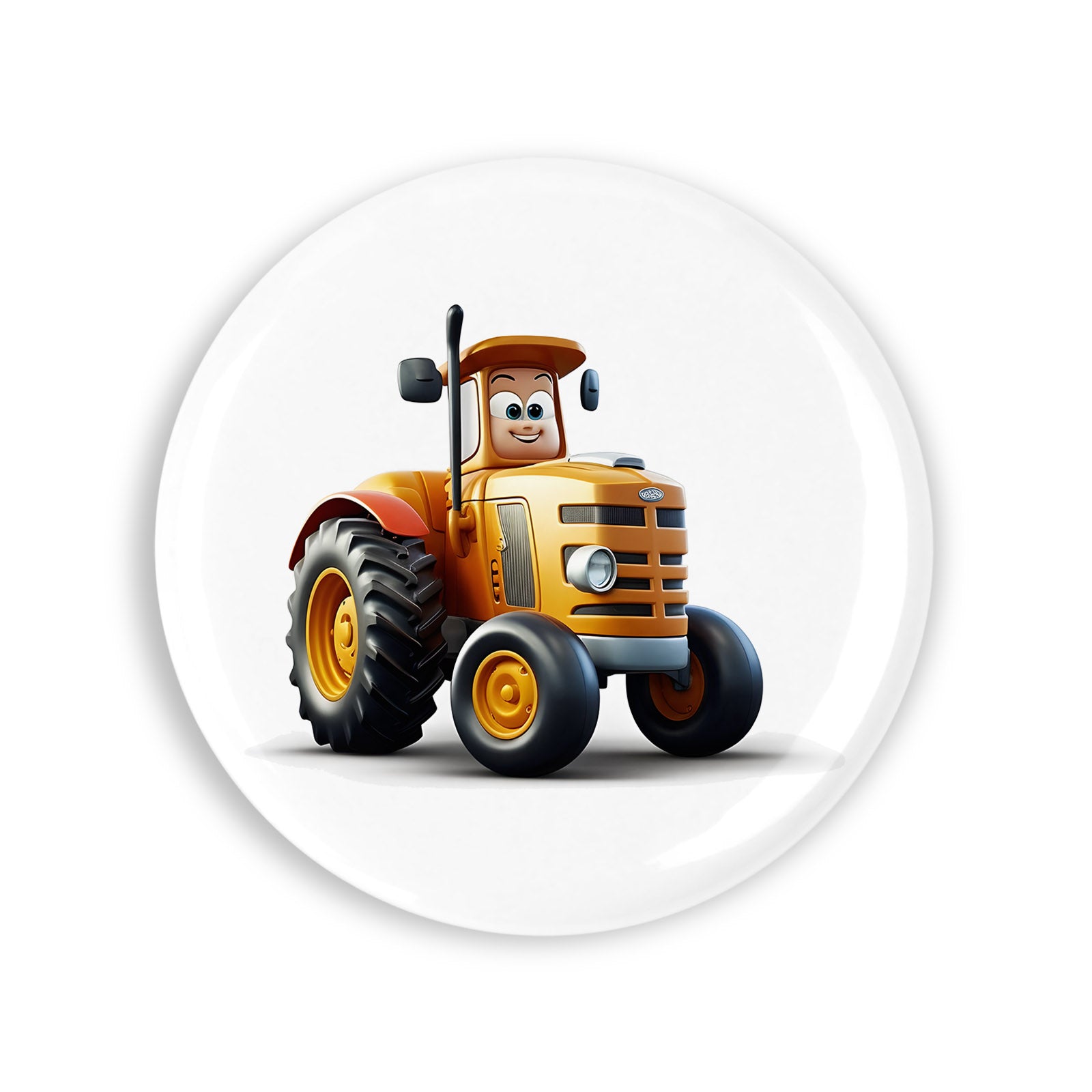 Set 4 insigne, Tractor galben cu ochi, NO3193, Metal, 44 mm, Multicolor