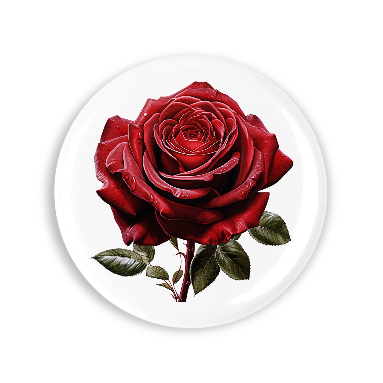 Set 4 insigne, Trandafir rosu Picaturi, NO1092, Metal, 44 mm, Multicolor