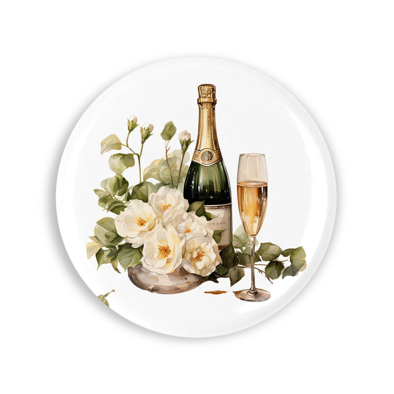 Set 4 insigne, Trandafiri albi si sampanie, NO5806, Metal, 44 mm, Multicolor