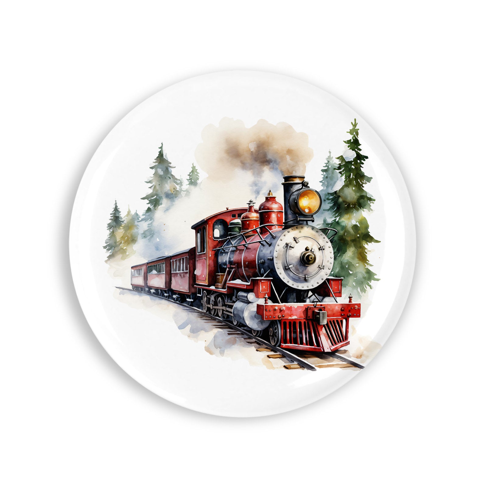 Set 4 insigne, Tren cu aburi in padure, NO964, Metal, 44 mm, Multicolor