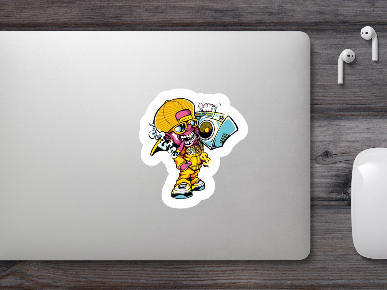 Set 5 bucati, Sticker decorativ, Baiatul cu radio, Rezistent la apa, NO8051, 6 cm, Multicolor