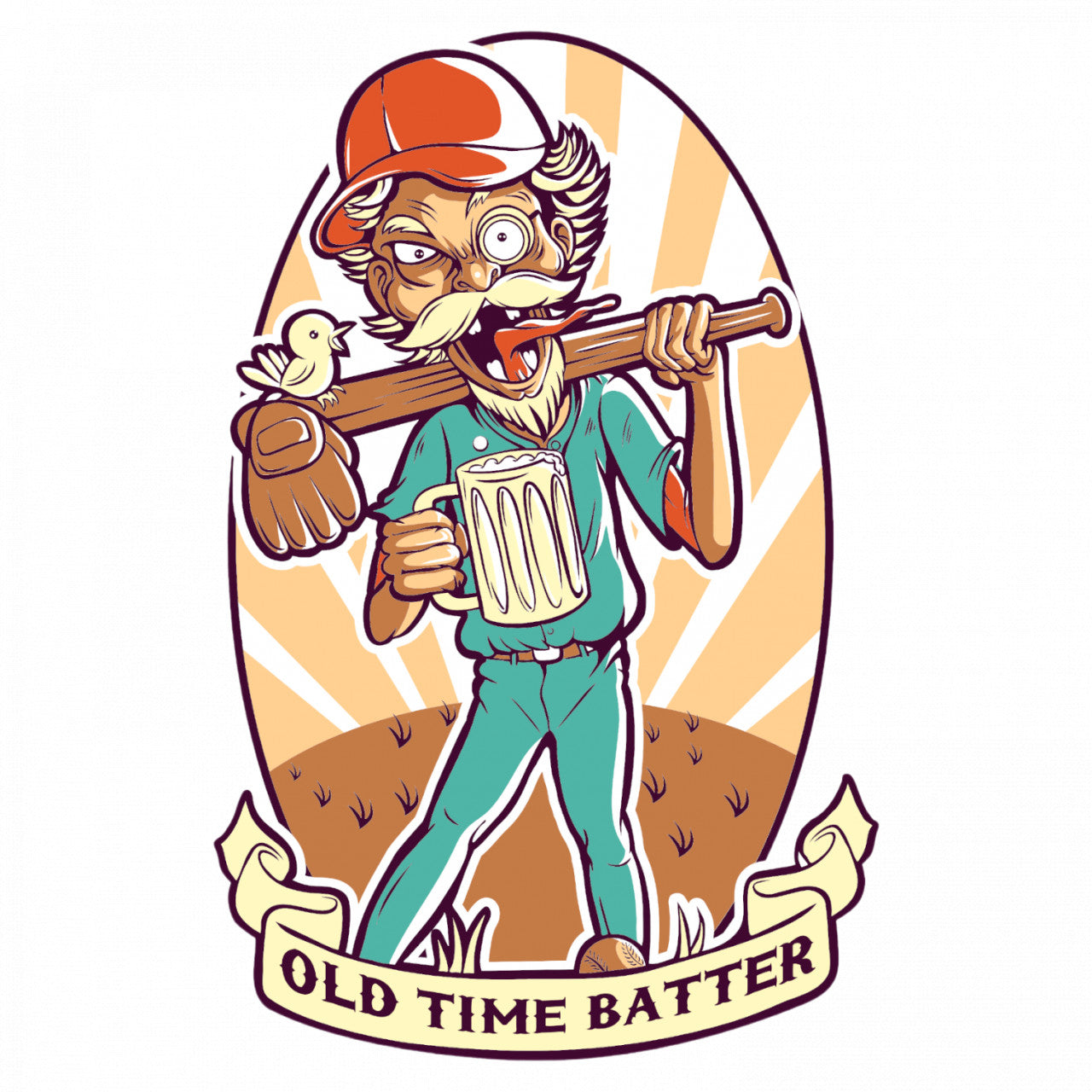 Set 5 bucati, Sticker decorativ, Batran care joaca baseball, Rezistent la apa, NO8074, 6 cm, Multicolor