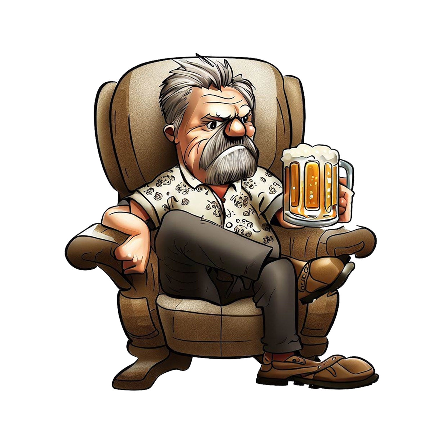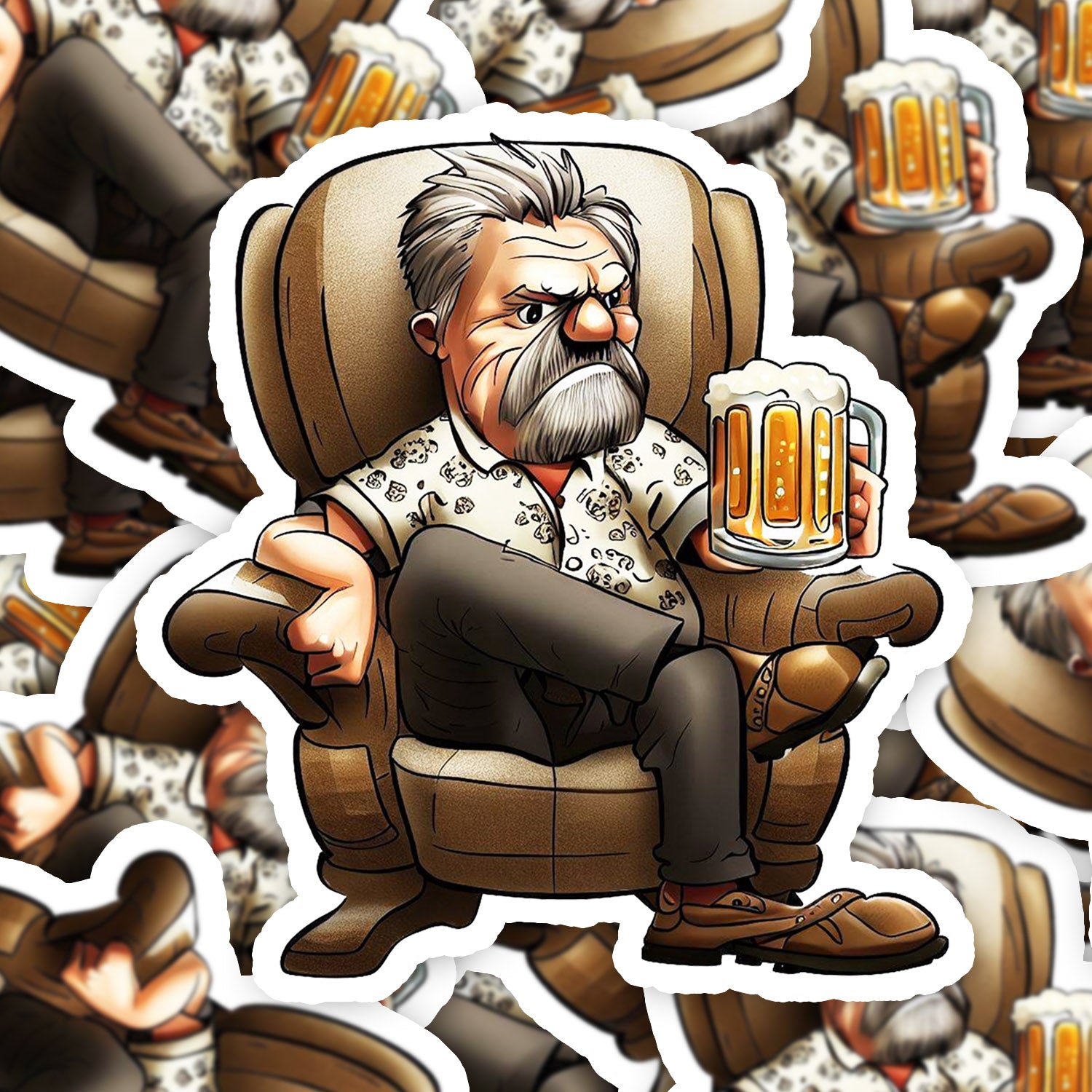Set 5 bucati, Sticker decorativ, Batranul din fotoliu carea bea bere, Rezistent la apa, NO14844, 6 cm, Multicolor