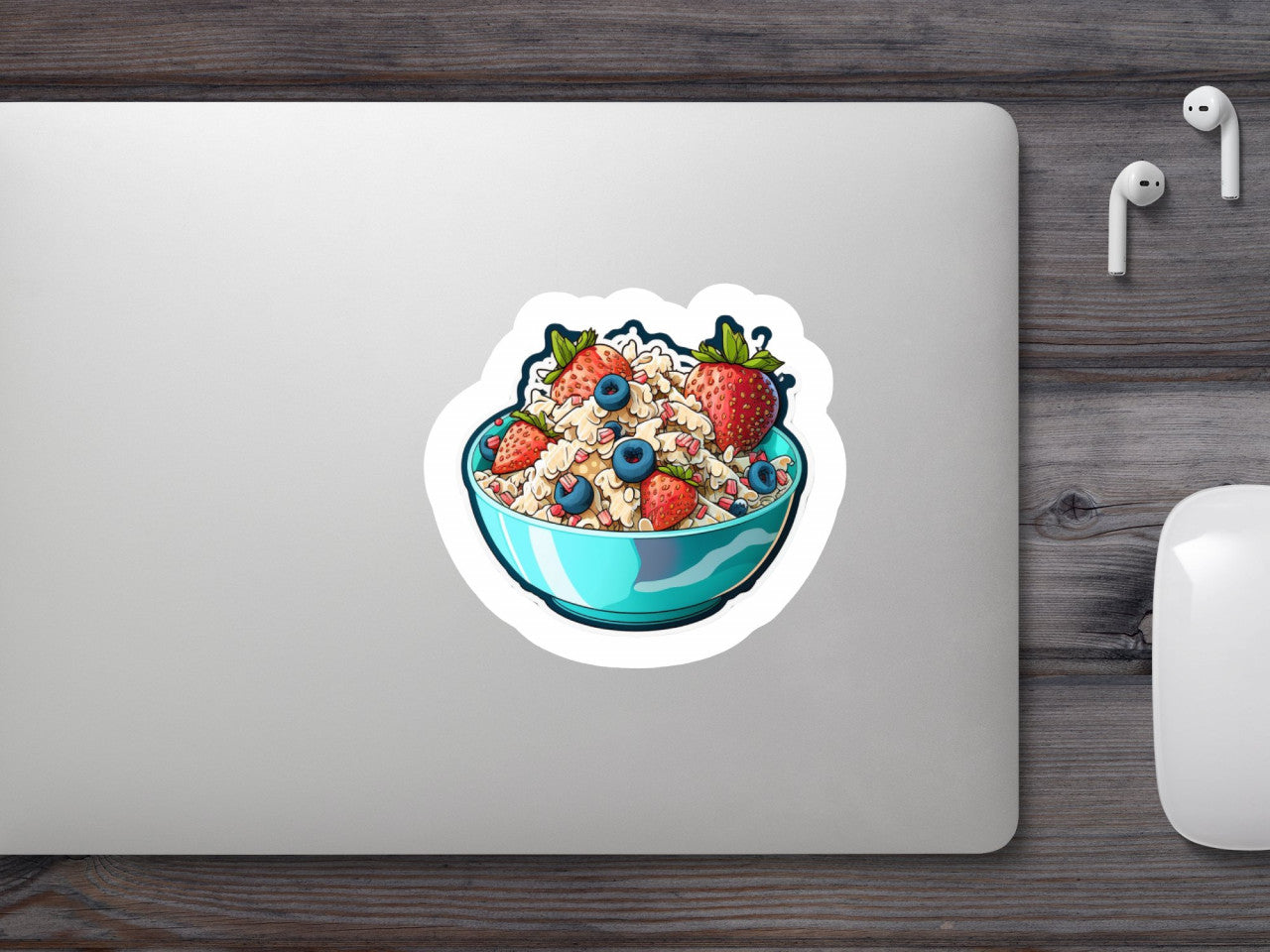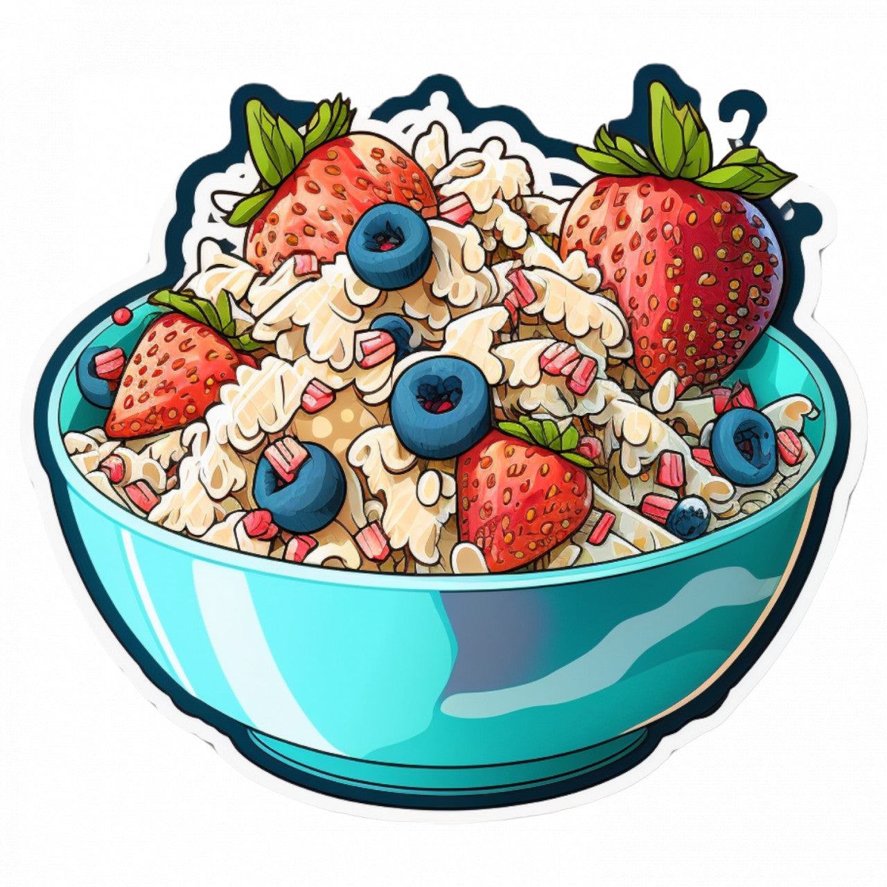 Set 5 bucati, Sticker decorativ, Bol cu cereale capsune si afine, Rezistent la apa, NO8616, 6 cm, Multicolor