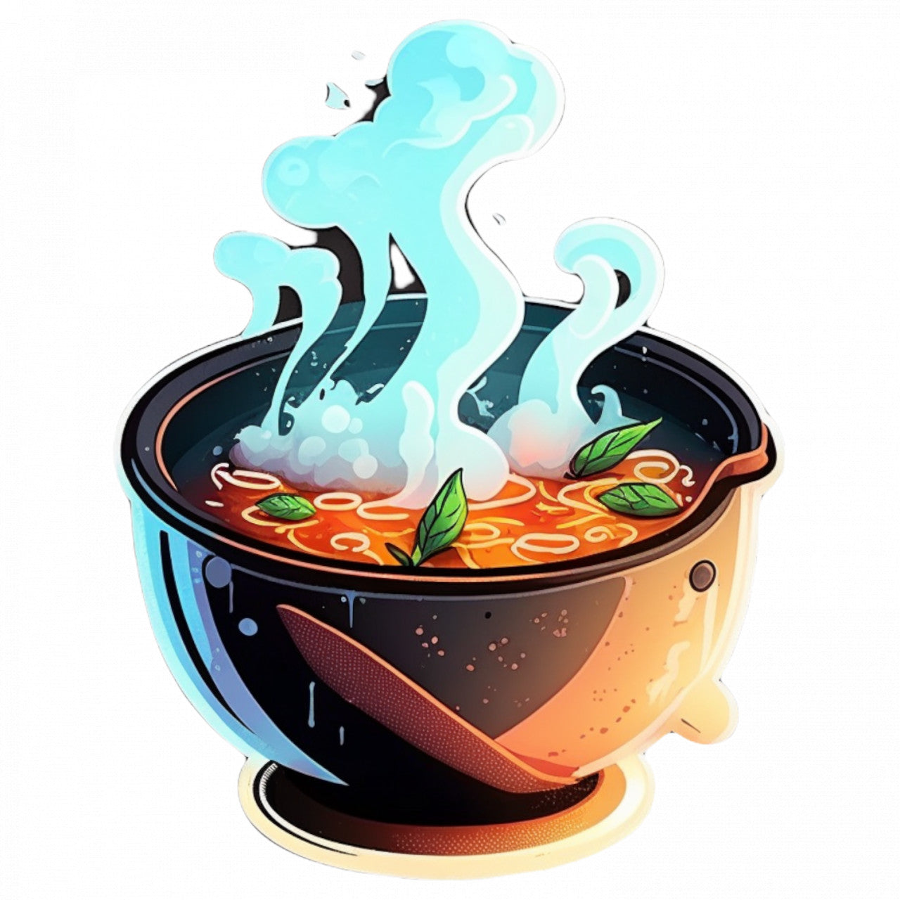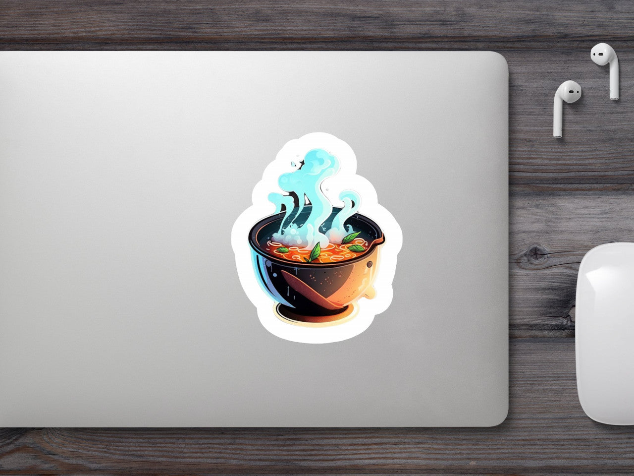 Set 5 bucati, Sticker decorativ, Bol cu supa fierbinte, Rezistent la apa, NO8623, 6 cm, Multicolor