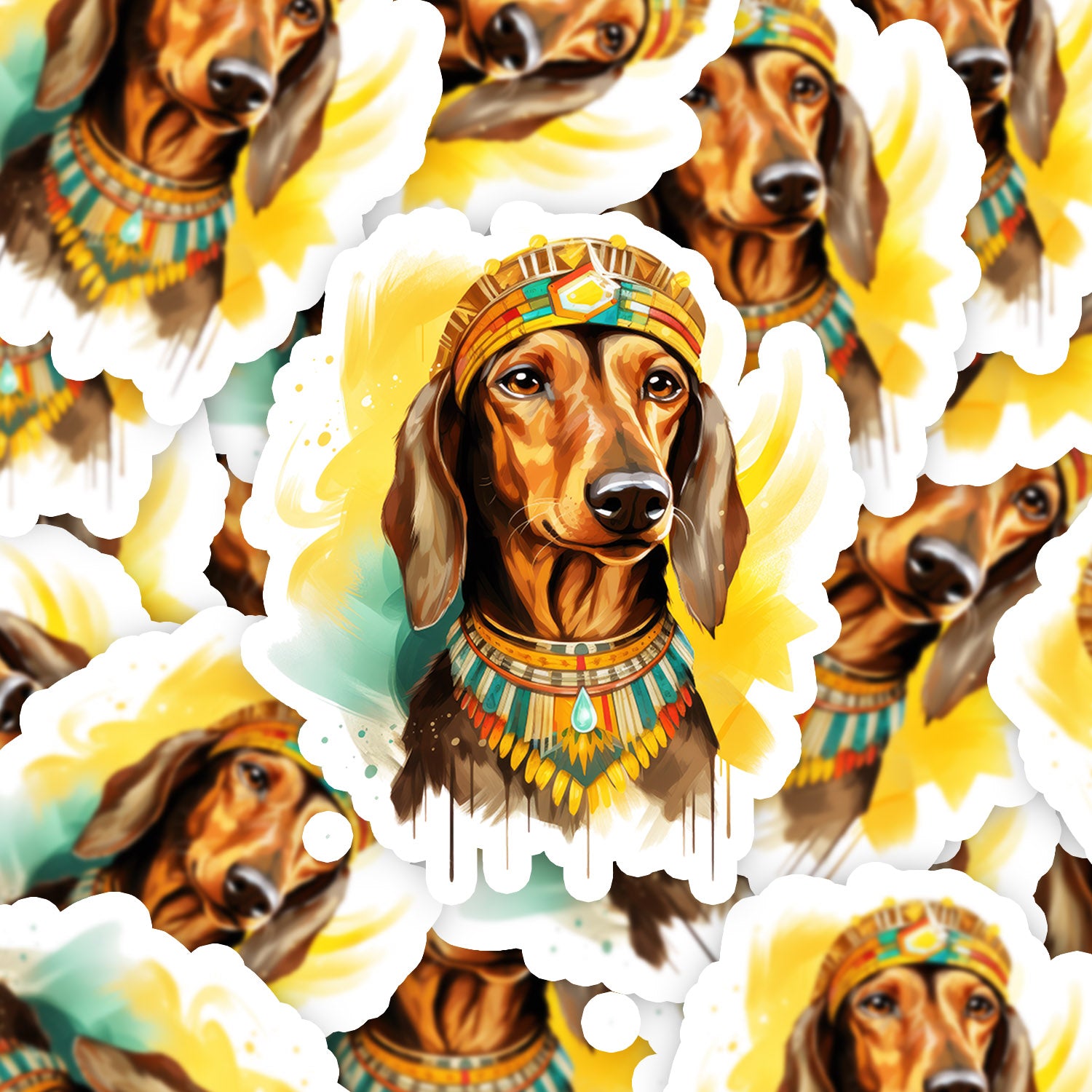 Set 5 bucati, Sticker decorativ, Caine egiptean Dachshund, Rezistent la apa, NO11352, 6 cm, Multicolor
