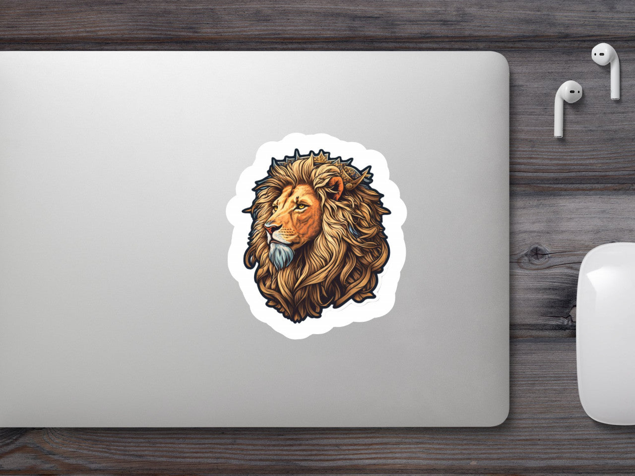 Set 5 bucati, Sticker decorativ, Cap de leu cu coama, Rezistent la apa, NO8723, 6 cm, Multicolor