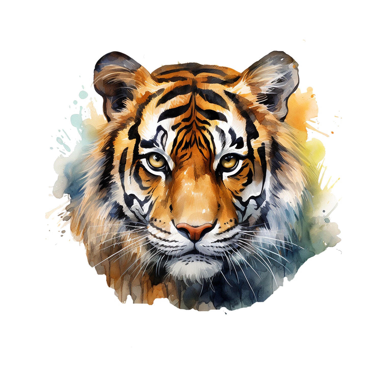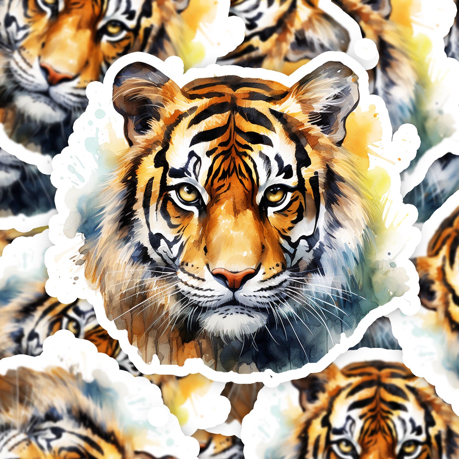 Set 5 bucati, Sticker decorativ, Cap de tigru pictat, Rezistent la apa, NO13446, 6 cm, Multicolor