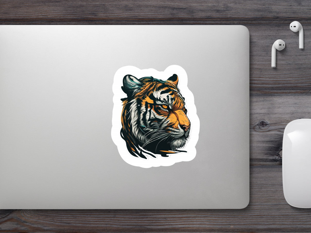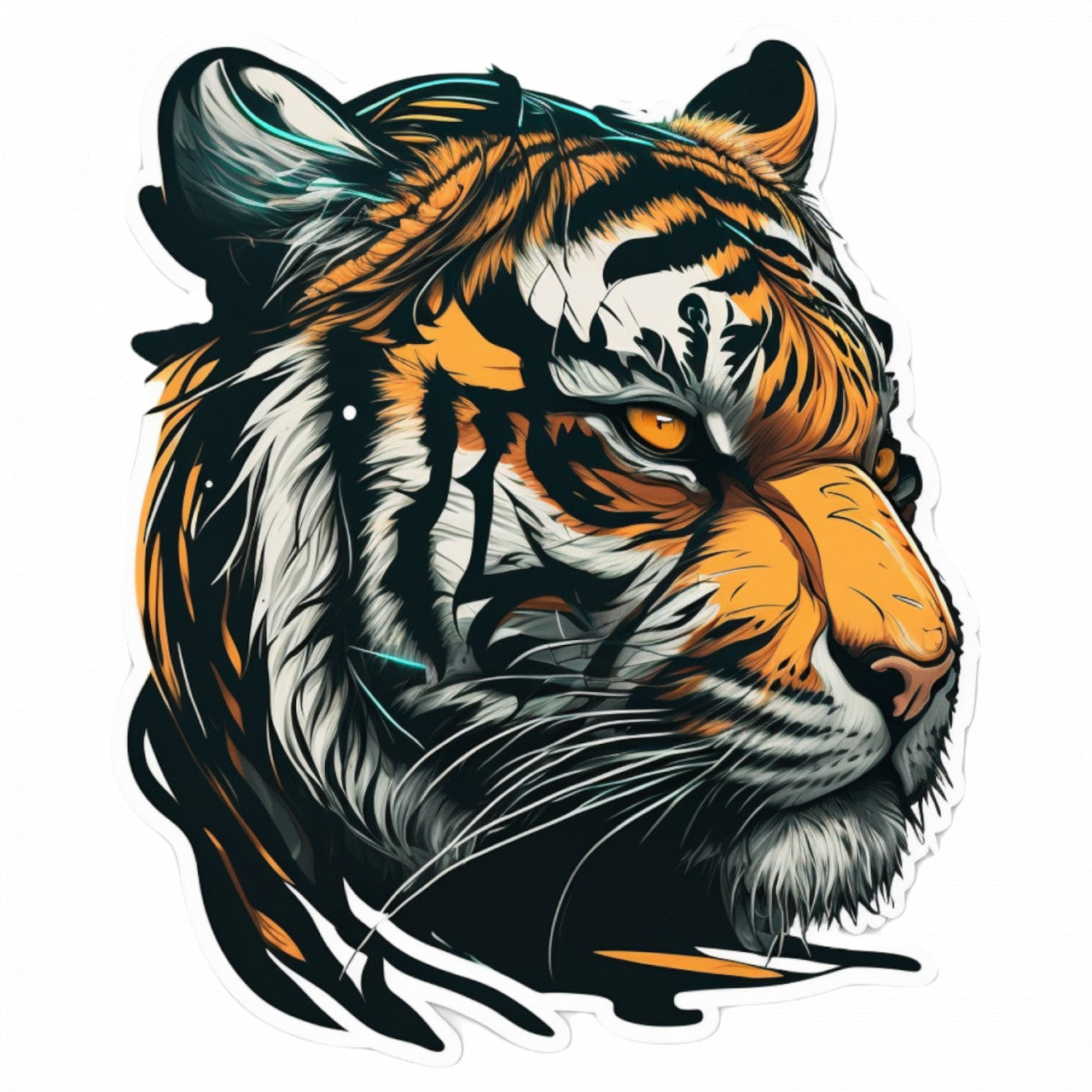 Set 5 bucati, Sticker decorativ, Cap de tigru, Rezistent la apa, NO8724, 6 cm, Multicolor