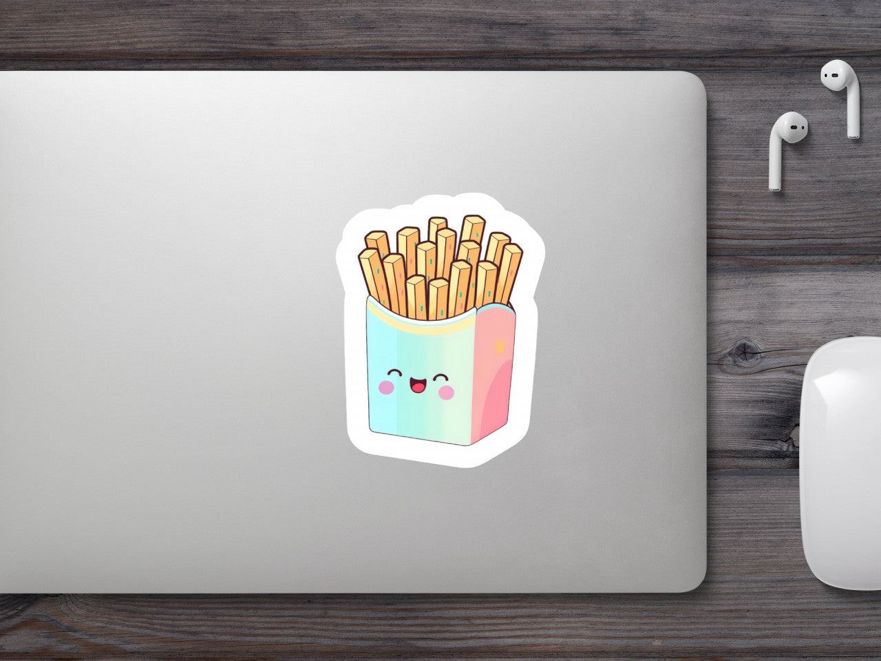 Set 5 bucati, Sticker decorativ, Cartofi frantuzesti deliciosi, Rezistent la apa, NO8738, 6 cm, Multicolor