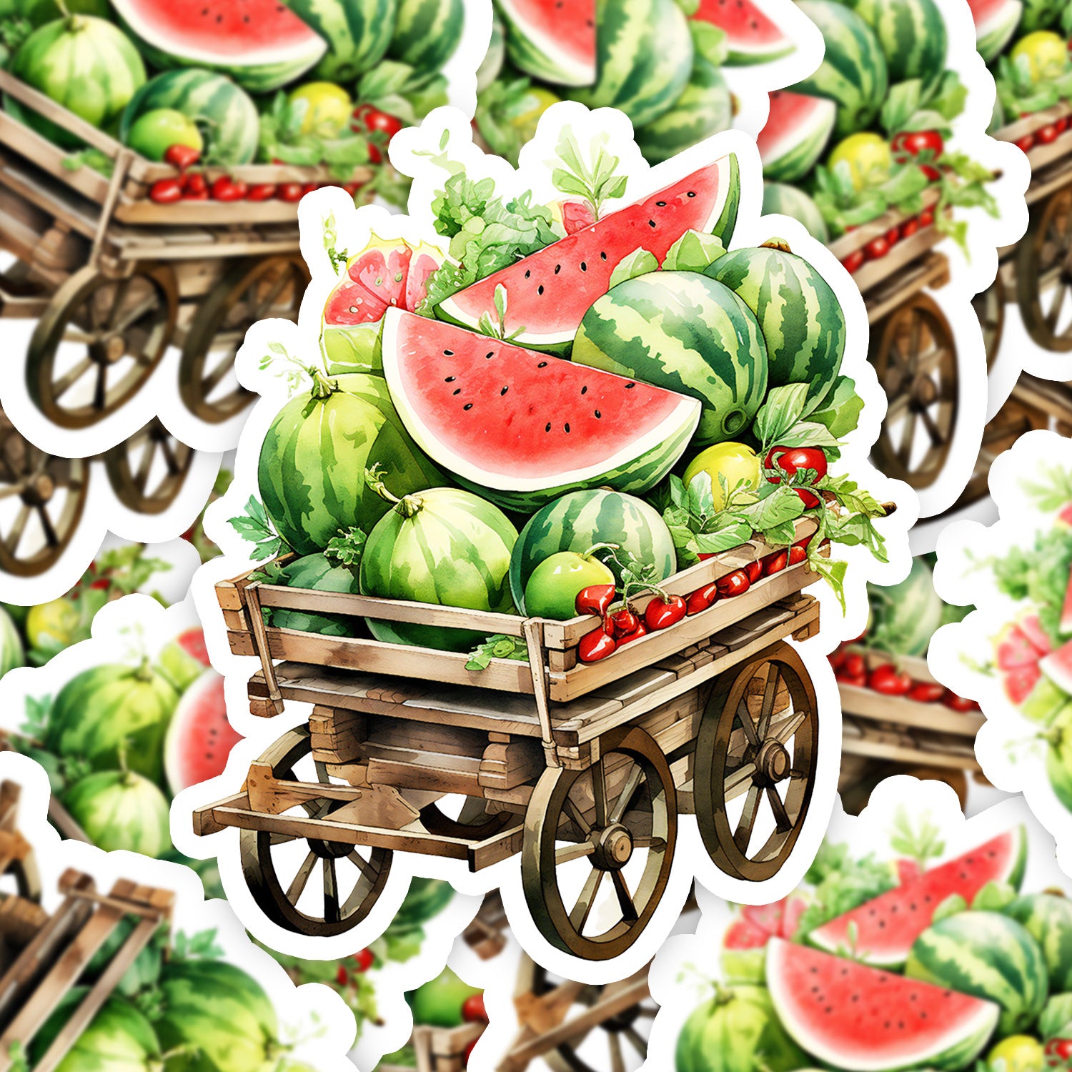 Set 5 bucati, Sticker decorativ, Caruta cu pepeni, Rezistent la apa, NO13368, 6 cm, Multicolor