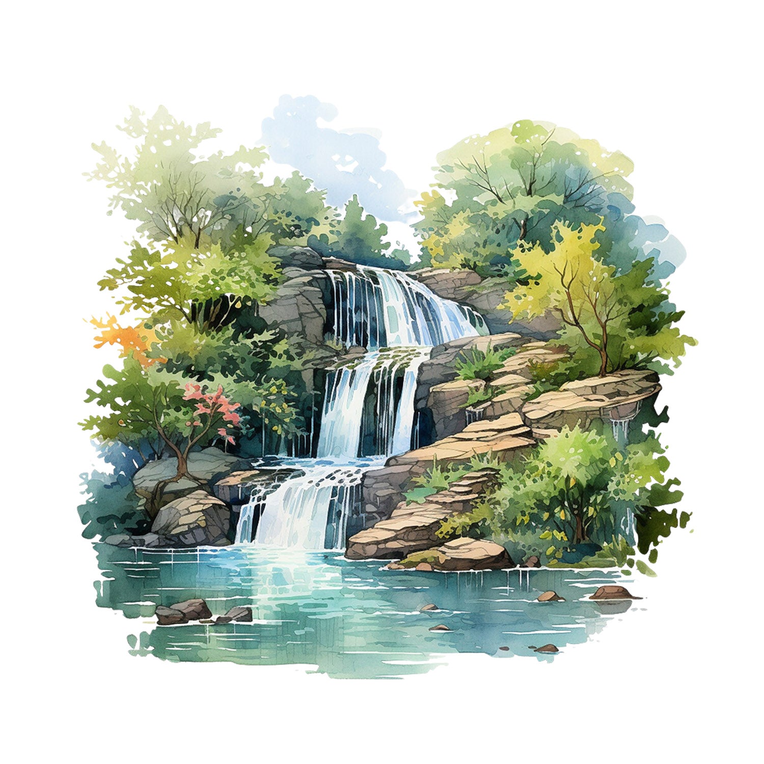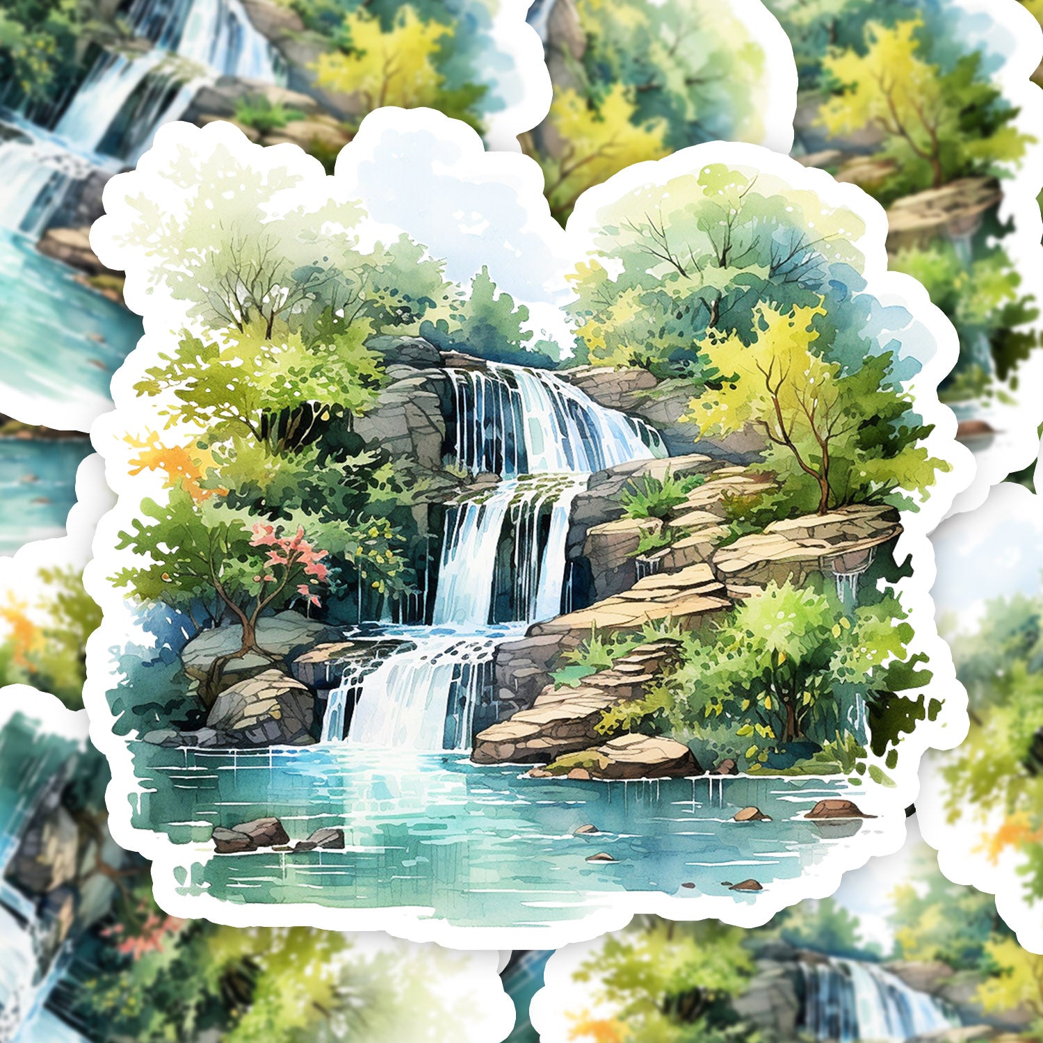 Set 5 bucati, Sticker decorativ, Cascada din munte, Rezistent la apa, NO11127, 6 cm, Multicolor