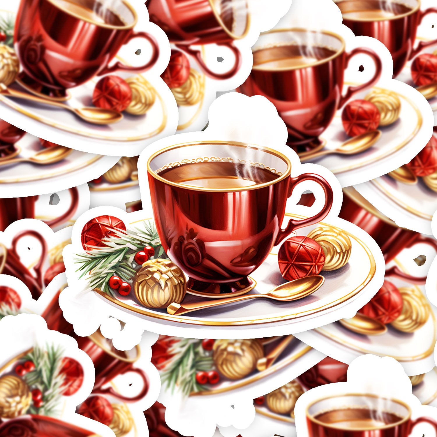 Set 5 bucati, Sticker decorativ, Ceasca cu cafea, Rezistent la apa, NO15967, 6 cm, Multicolor