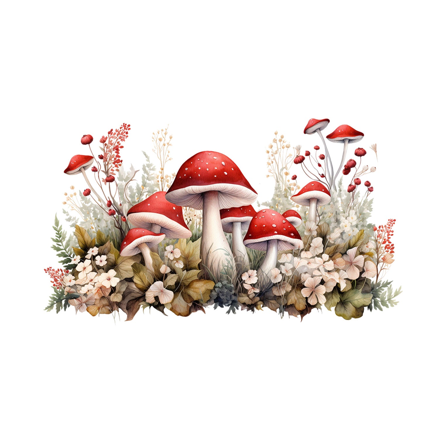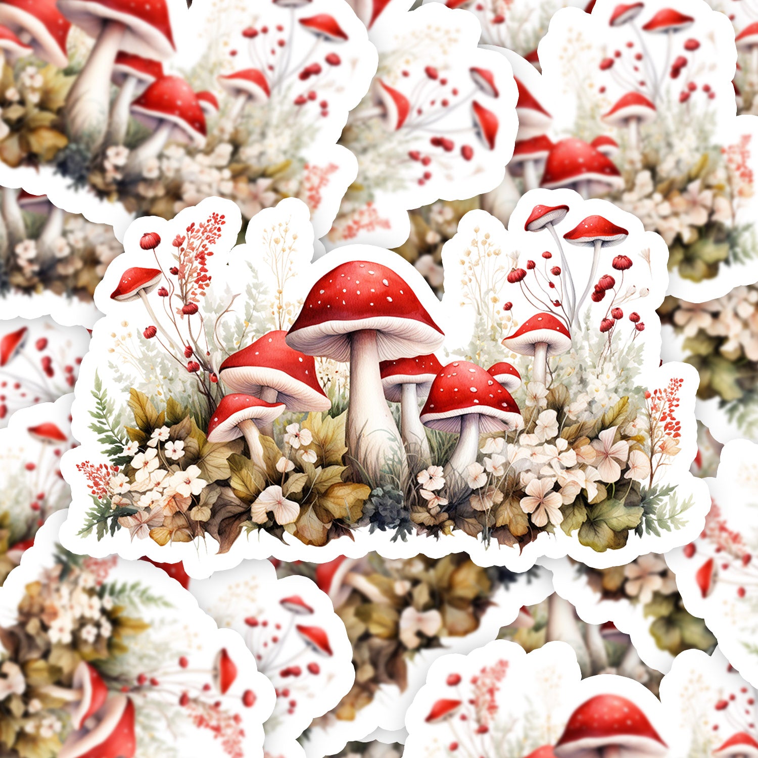 Set 5 bucati, Sticker decorativ, Ciupercile cu codita alba, Rezistent la apa, NO16435, 6 cm, Multicolor