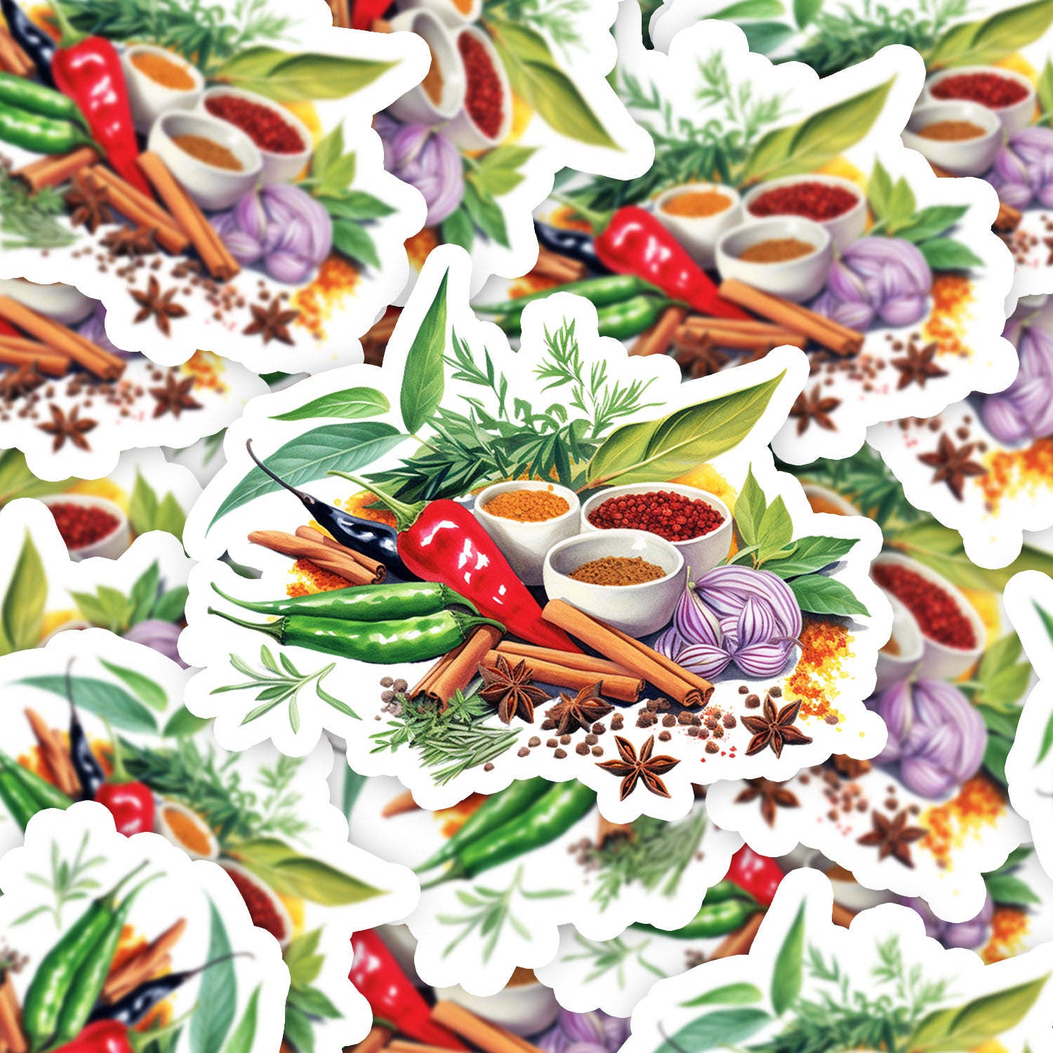Set 5 bucati, Sticker decorativ, Condimente Dwane, Rezistent la apa, NO12933, 6 cm, Multicolor